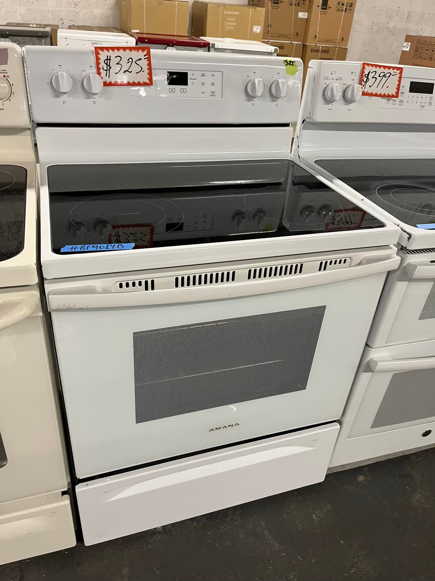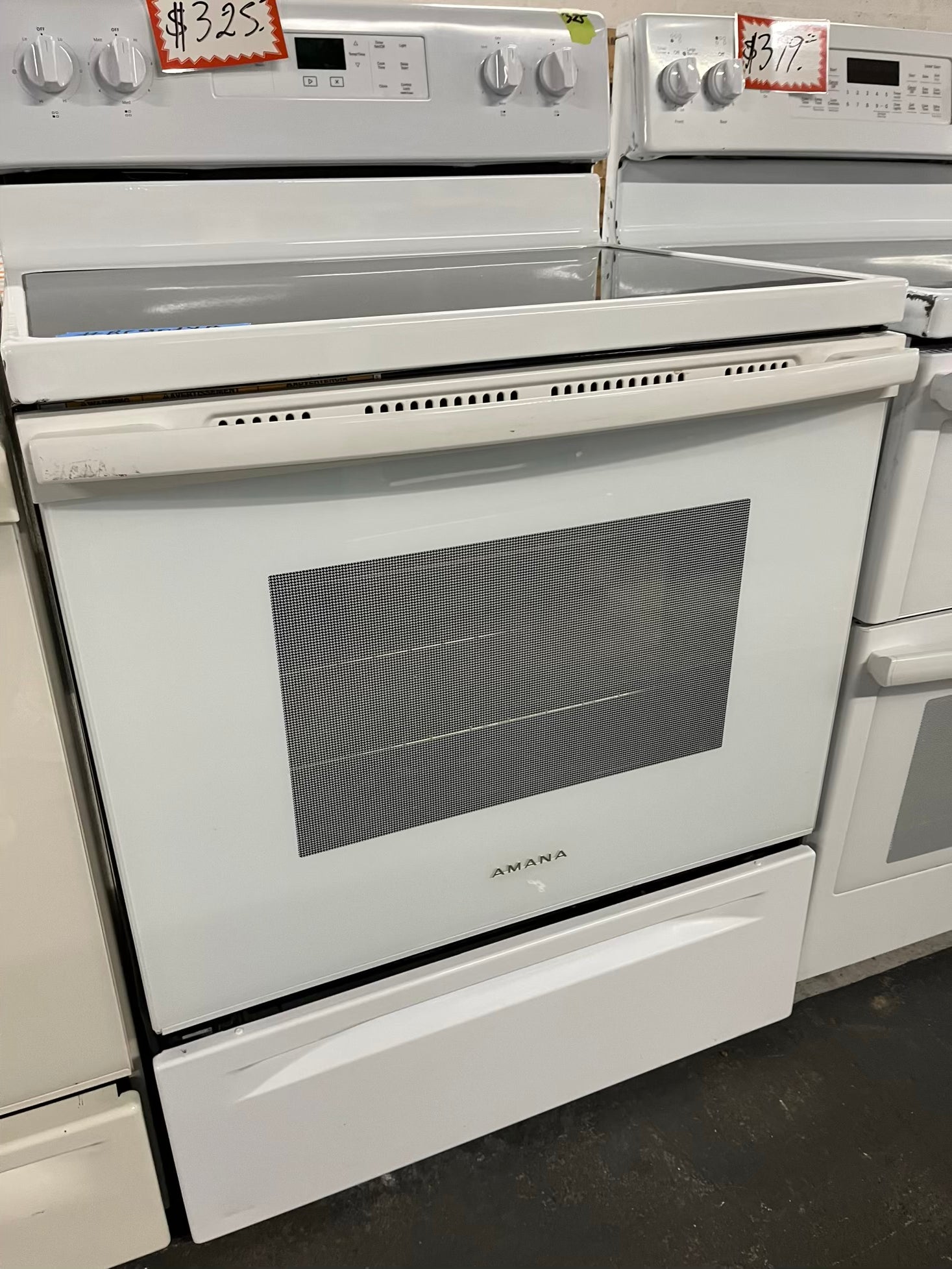 Amana electric range 4 burner bake broil in white 30” #RF901YB