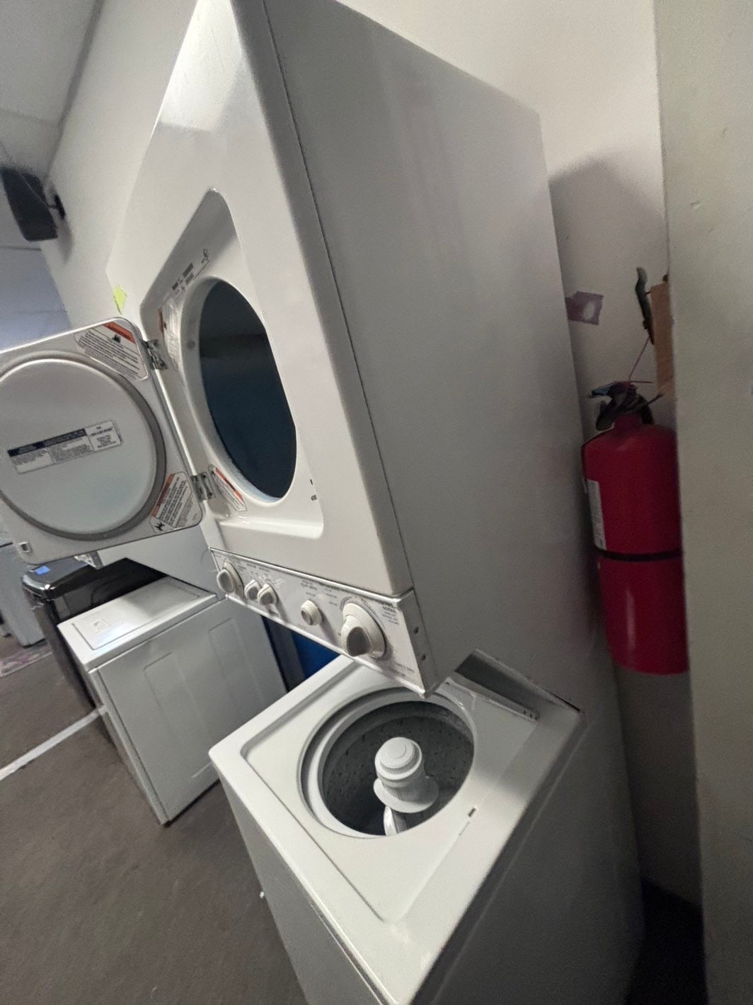 >Kenmore stacked laundry center Electric 220v washer & dryer set used -in white 24" #LC811L