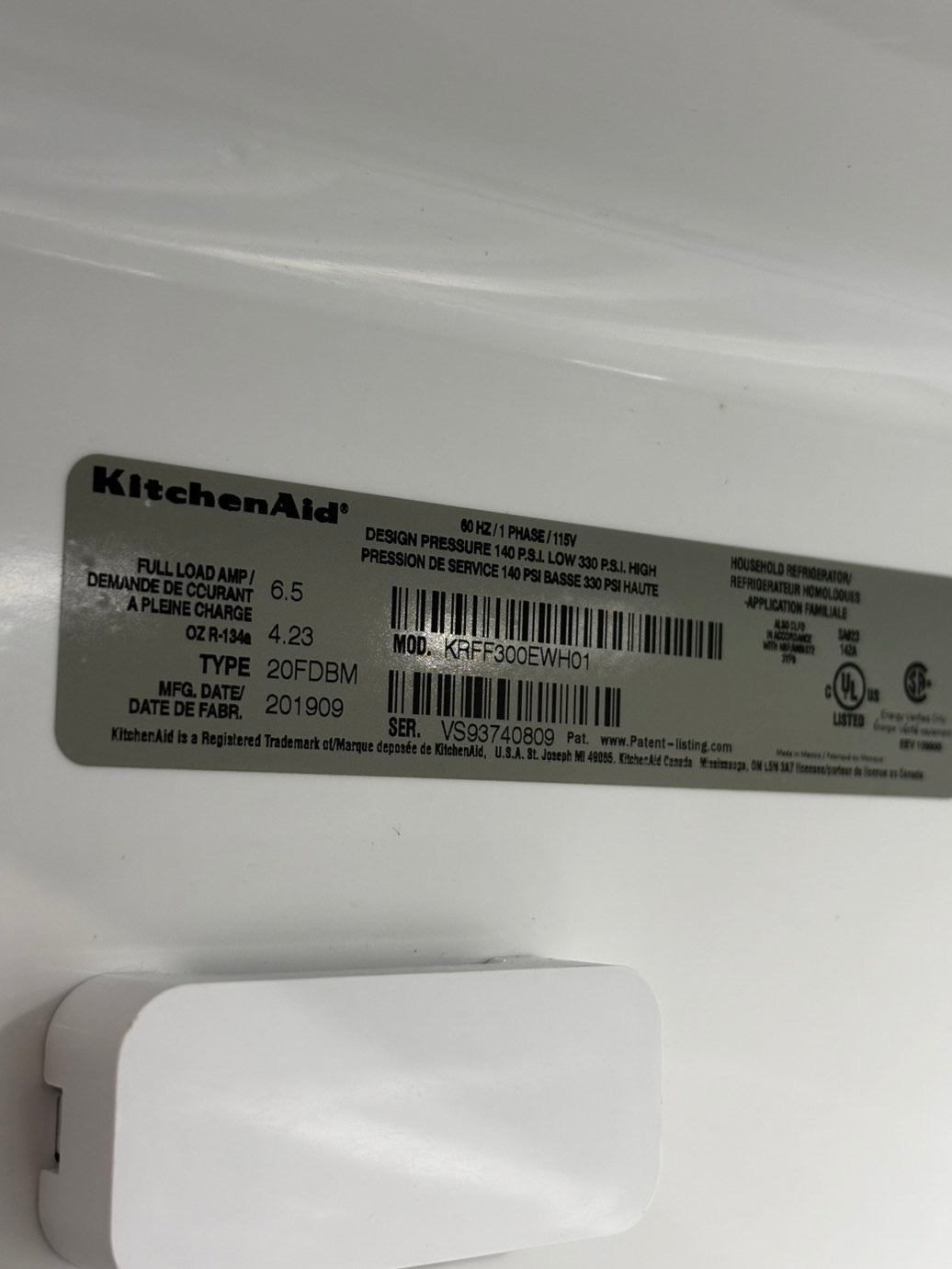 - KitchenIAd 30” wide French door Refrigerator white steel W/ice maker & water inside Used Refurbished #RFKW550L