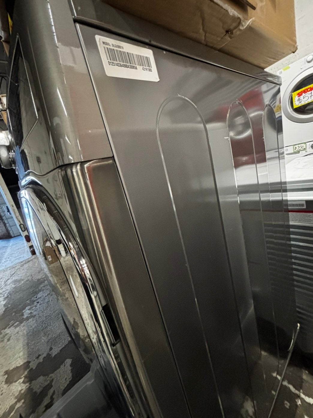 LG gas steam Dryer 29” mega capacity -gray front load w/pedestal extra storage stainless steel drum large capacity used- refurbished #GD339WB