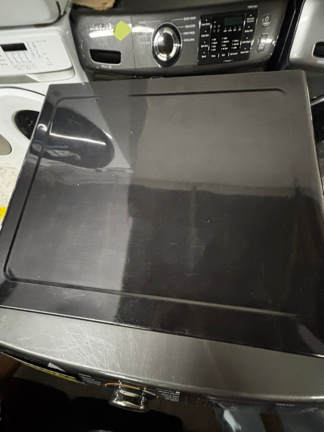 -Samsung steam washer 4.5 cu ft & steam dryer 7.5 cu ft set electric 220v front load stackable or side by side -sensor dry He in dark gray #WDG123JL