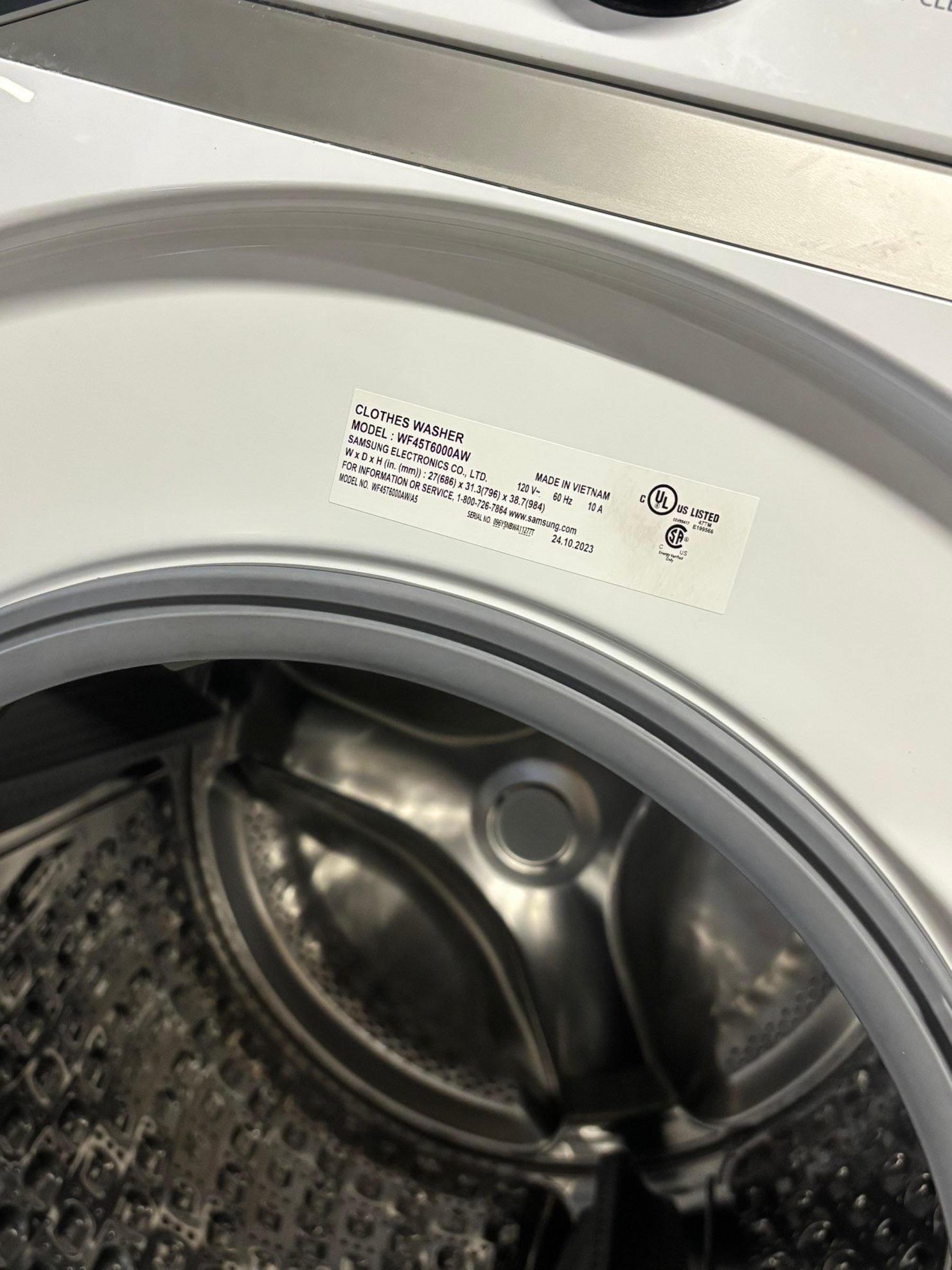 -Samsung white 27” 4.5cu.ft large capacity front load washing machine steam cycle stackable or side by side #SW047IB