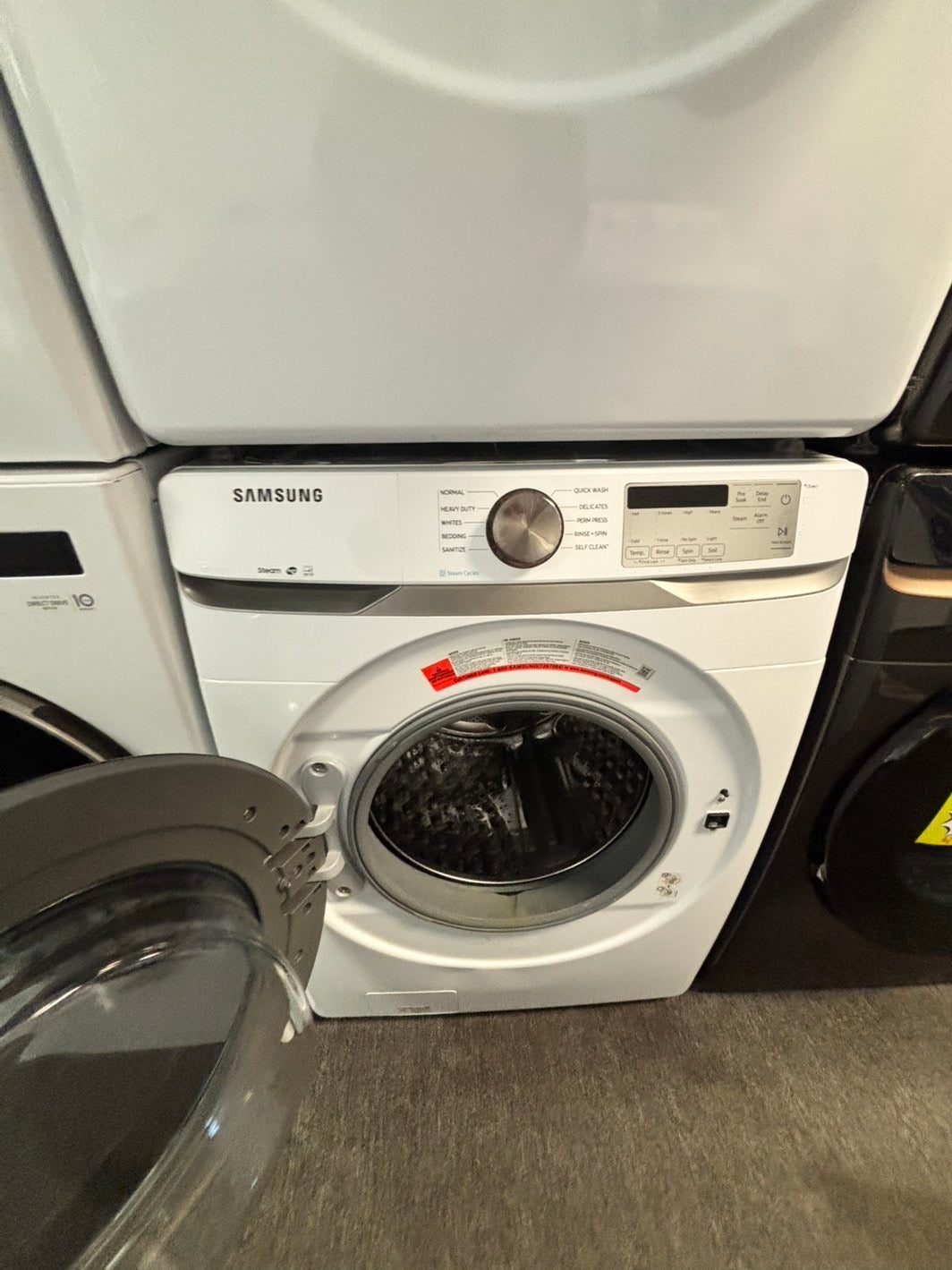 -Samsung steam white color washer 4.5 cu ft & steam dryer 7.5 cu ft set electric 220v front load stackable or side by side -sensor dry HE #WD1921VL