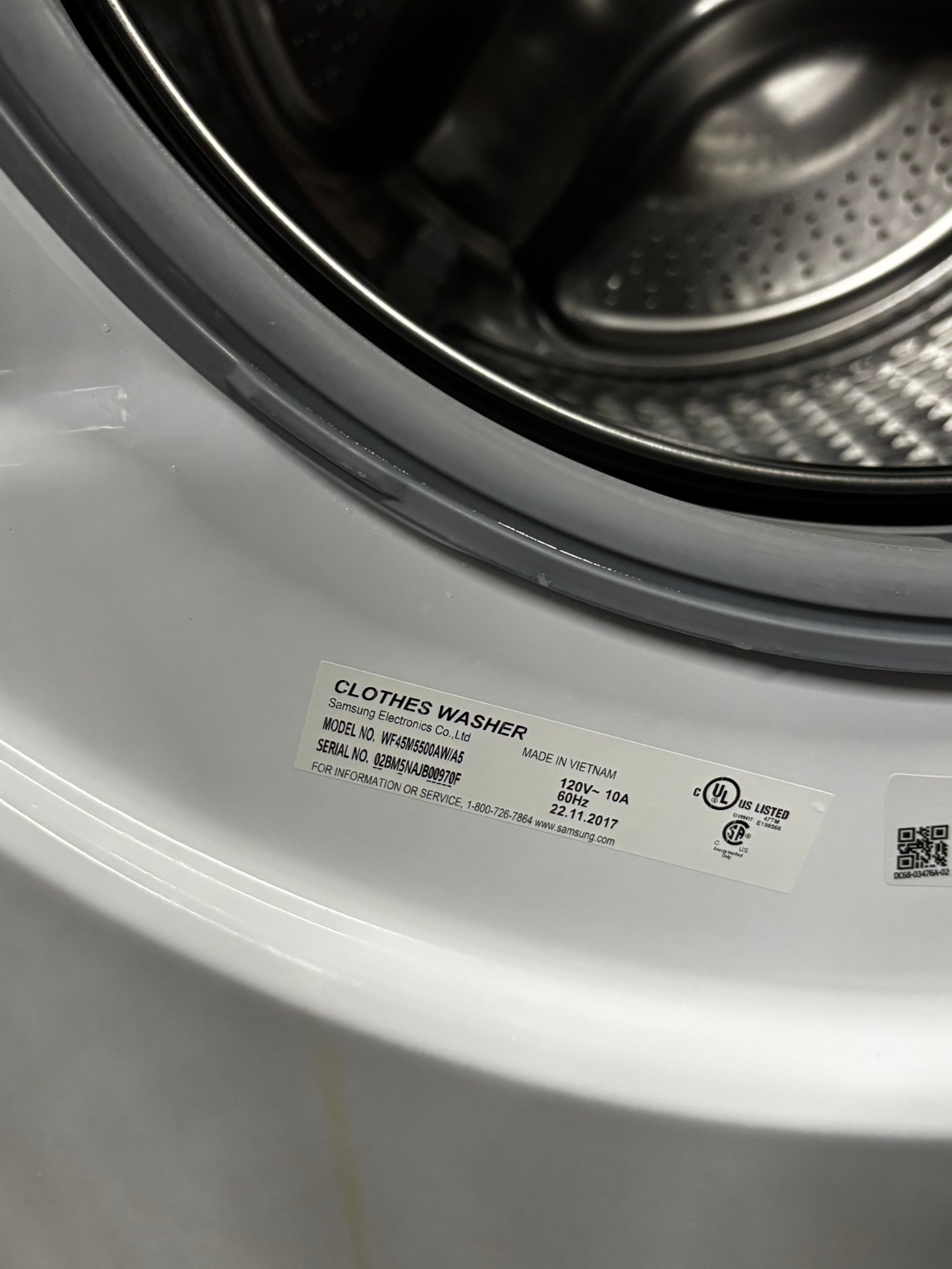 Samsung steam washer 4.5 cu ft & steam dryer 7.5 cu ft set electric 220v front load stackable or side by side sensor dry He in white #WD823JB