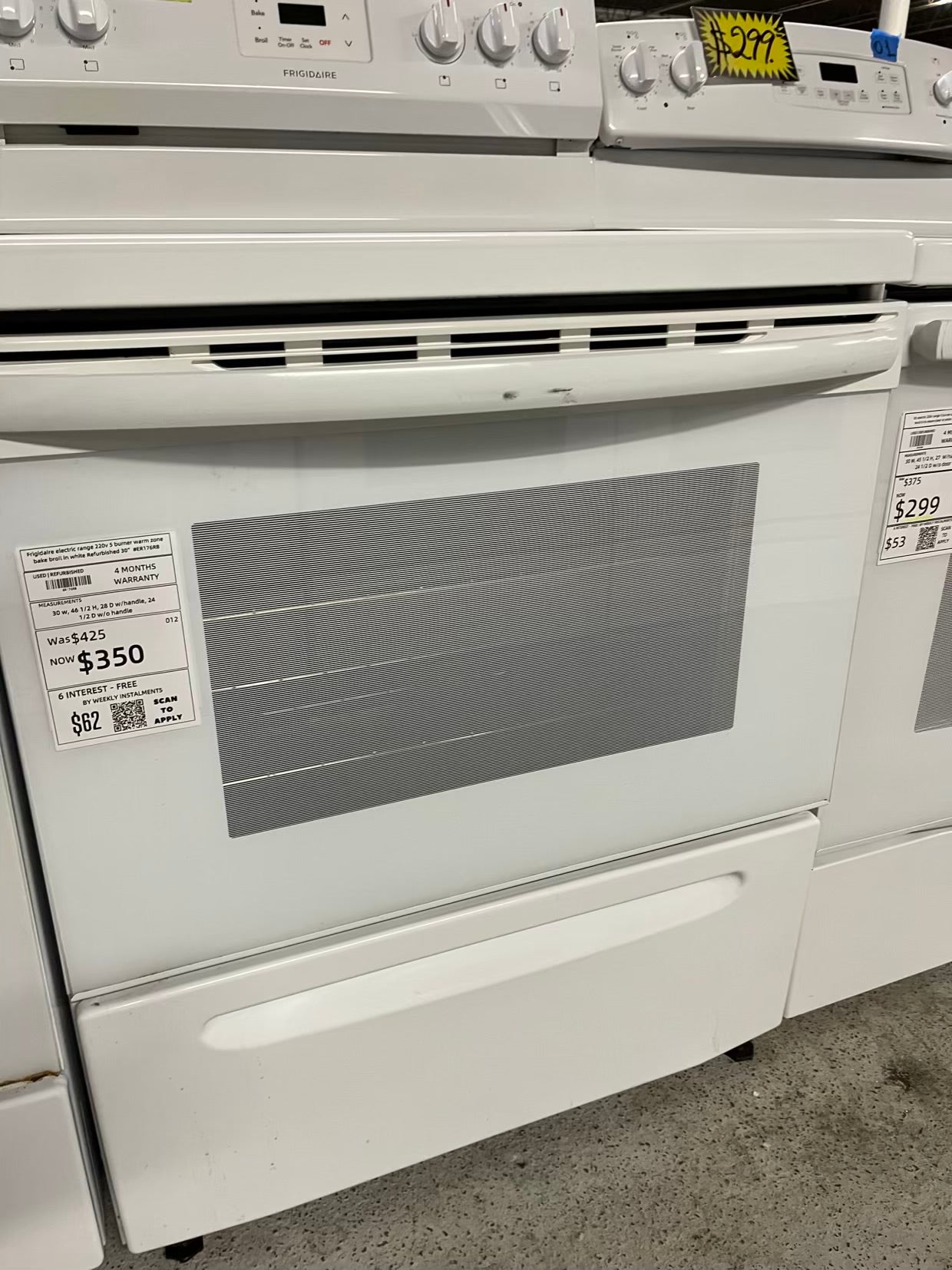 Frigidaire electric range 220v 5 burner warm zone bake broil in white Refurbished 30" #ER176RB