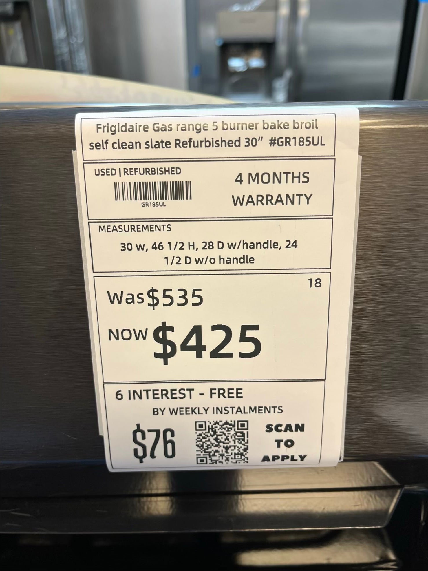 Frigidaire Gas range 5 burner bake broil self clean slate Refurbished 30" #GR294BL
