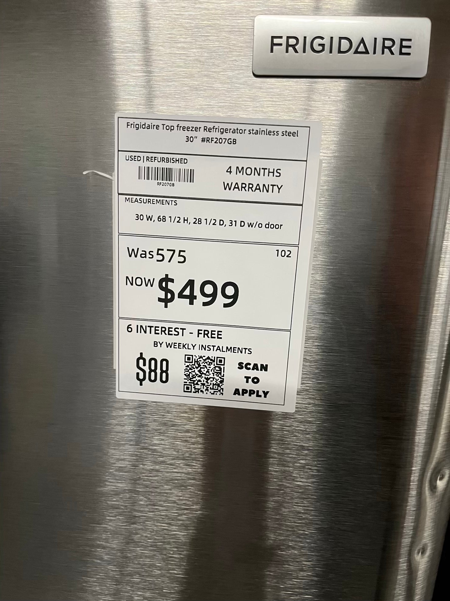 - Frigidaire Top freezer Refrigerator stainless steel 30" #RF207GB