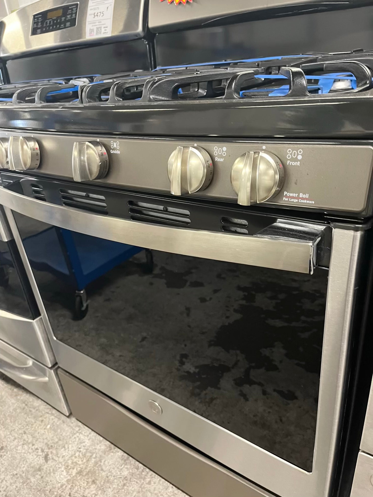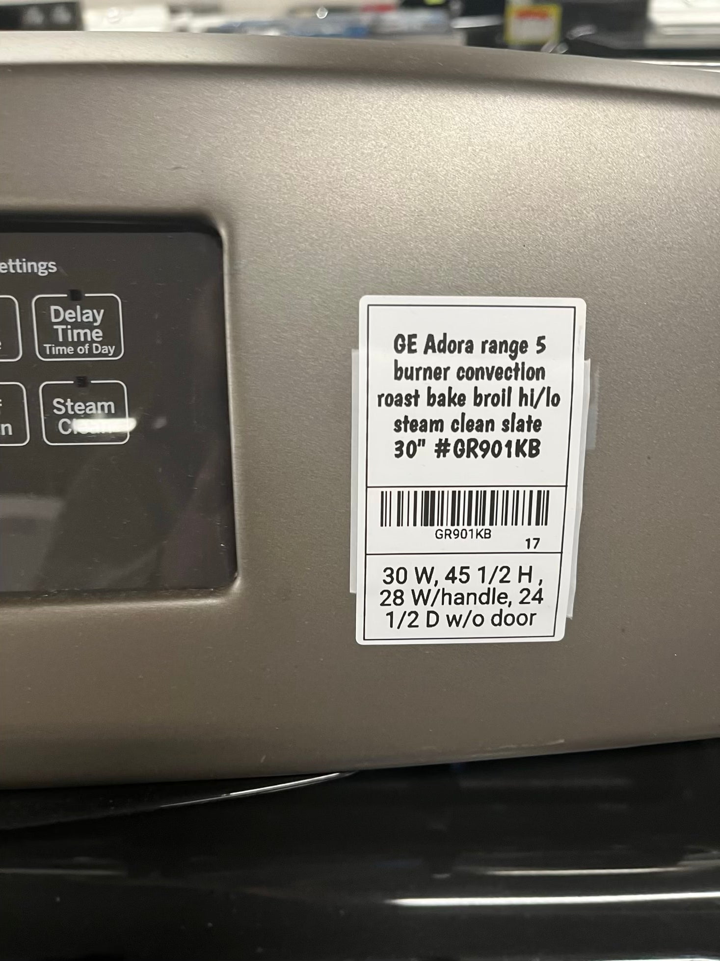 - GE Adora range 5 burner convection roast bake broil hi/lo steam clean slate used refurbished 30" #GR901KB