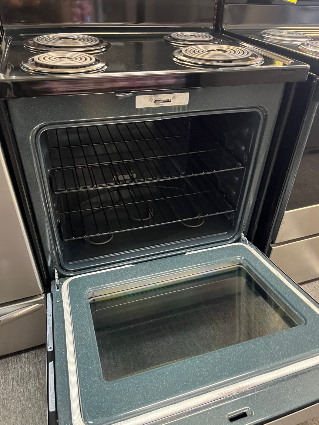 =GE Coil Top electric stove white bake broil 4 burner Self clean 30” stainless steel used-Refurbished #ELGE28NL