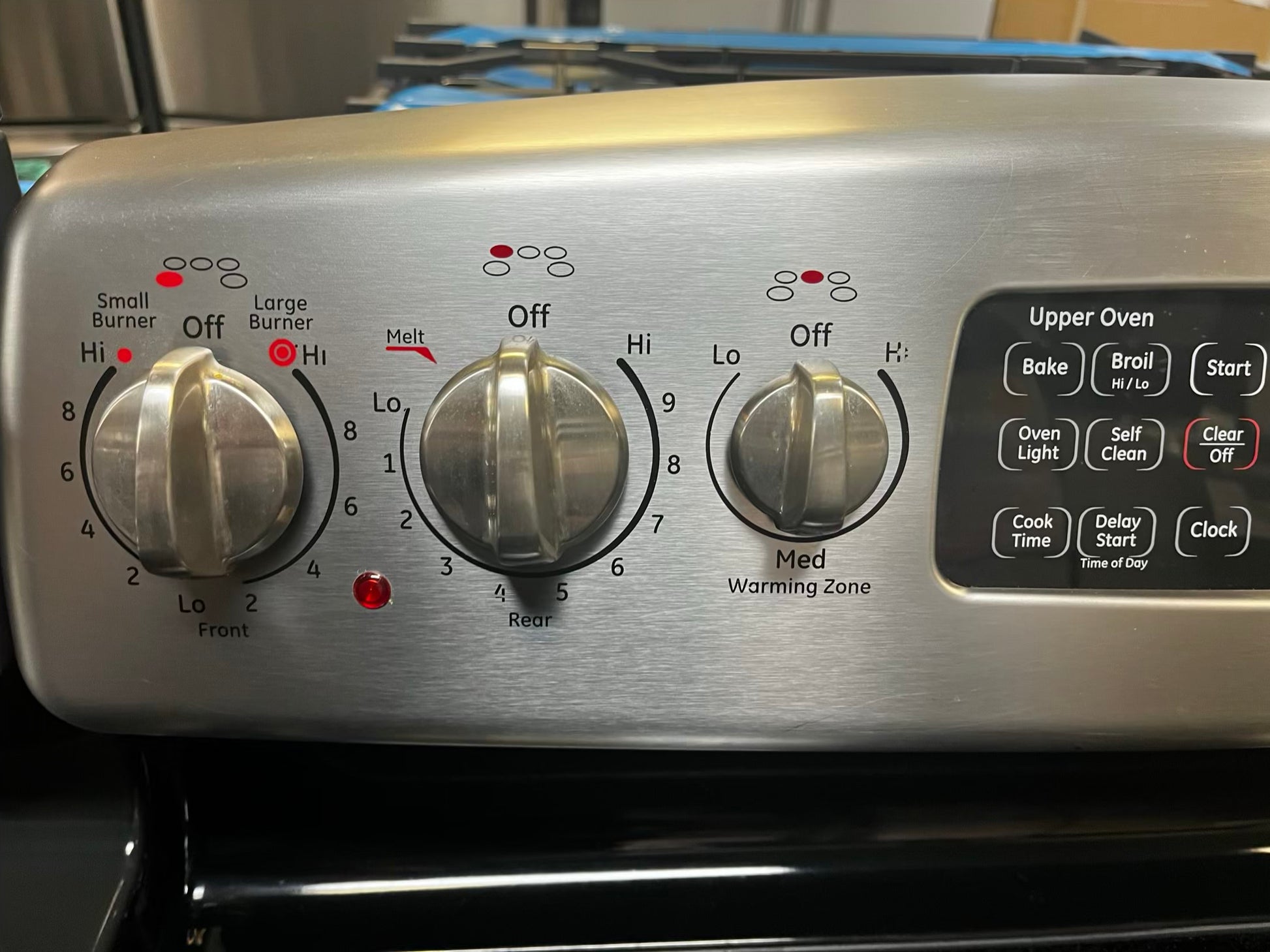 GE electric 220v glass top double oven range 5 burner Refurbished bake Broil self clean stainless steel 30" #ER1034L