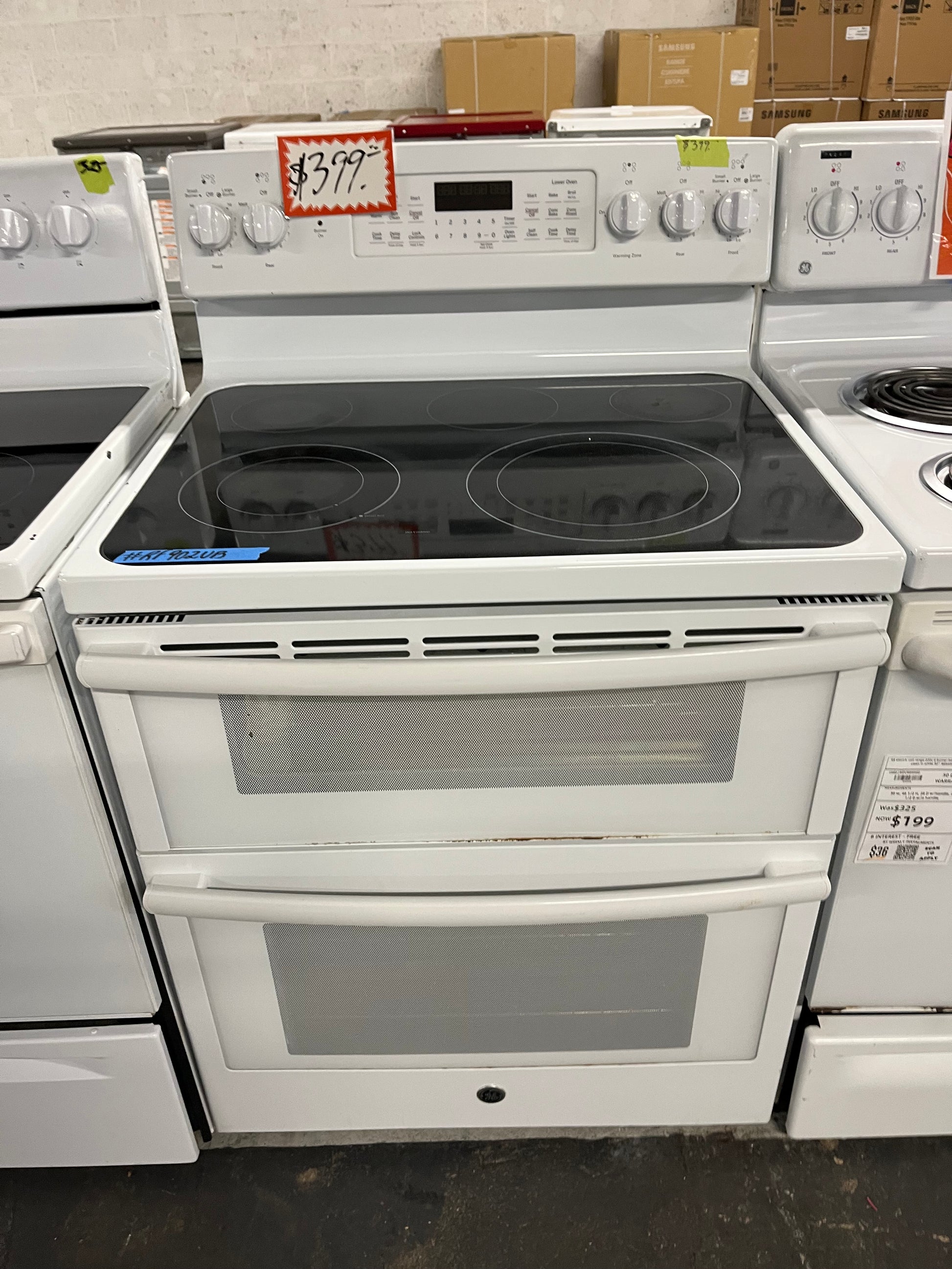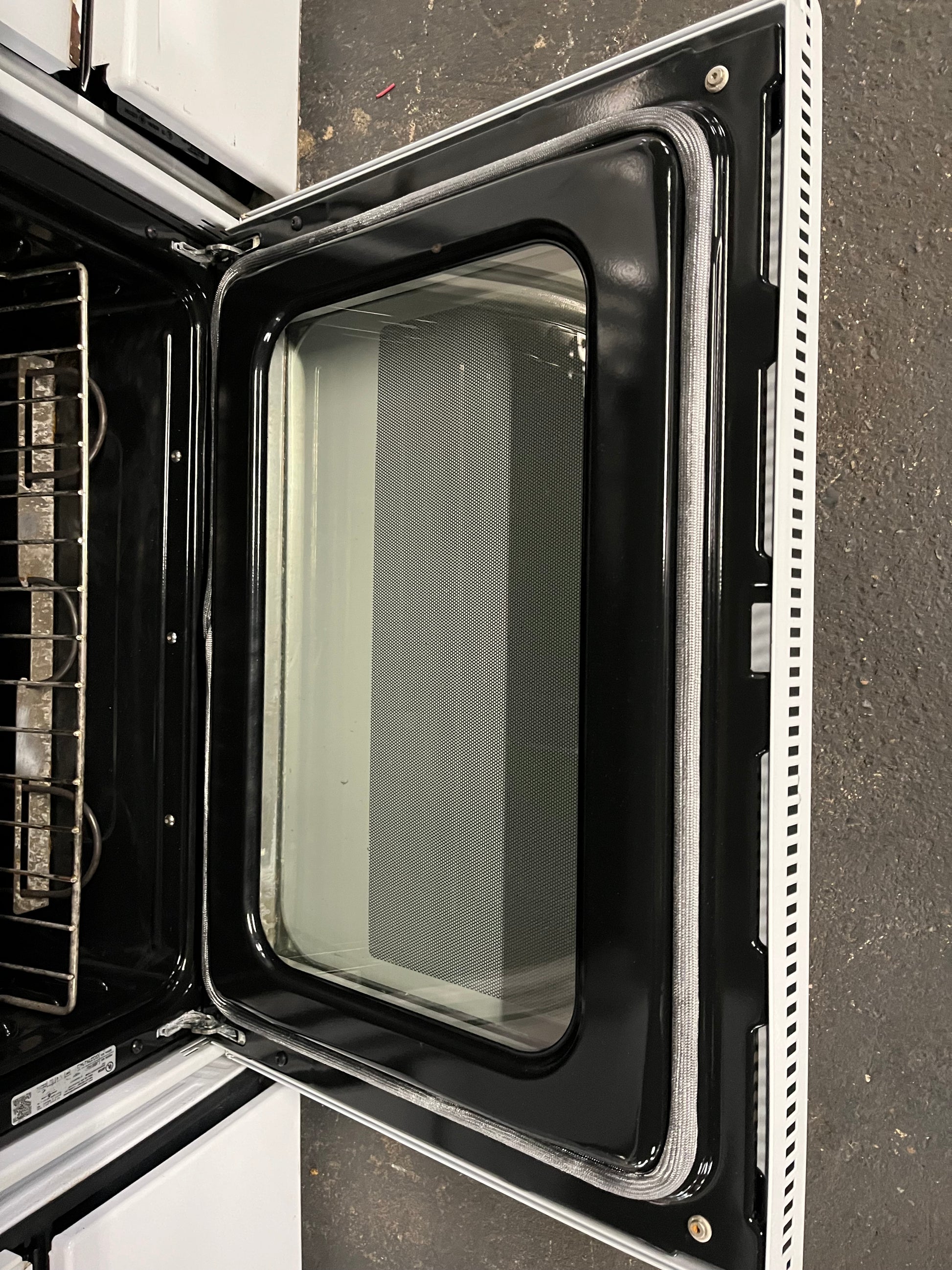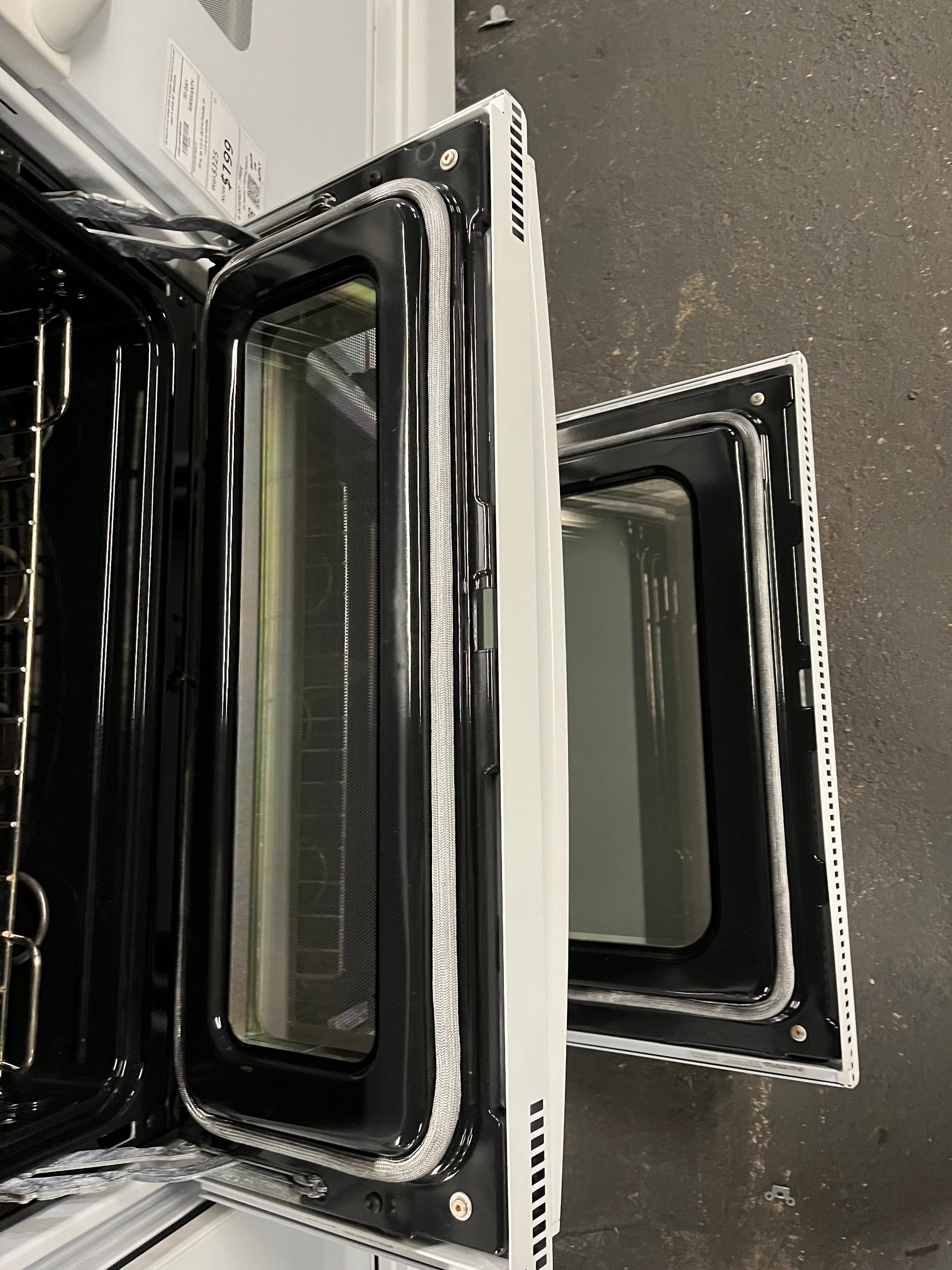 GE electric range 5 burner warming zone convection bake broil roast hi/lo in white 30” #RF902UB