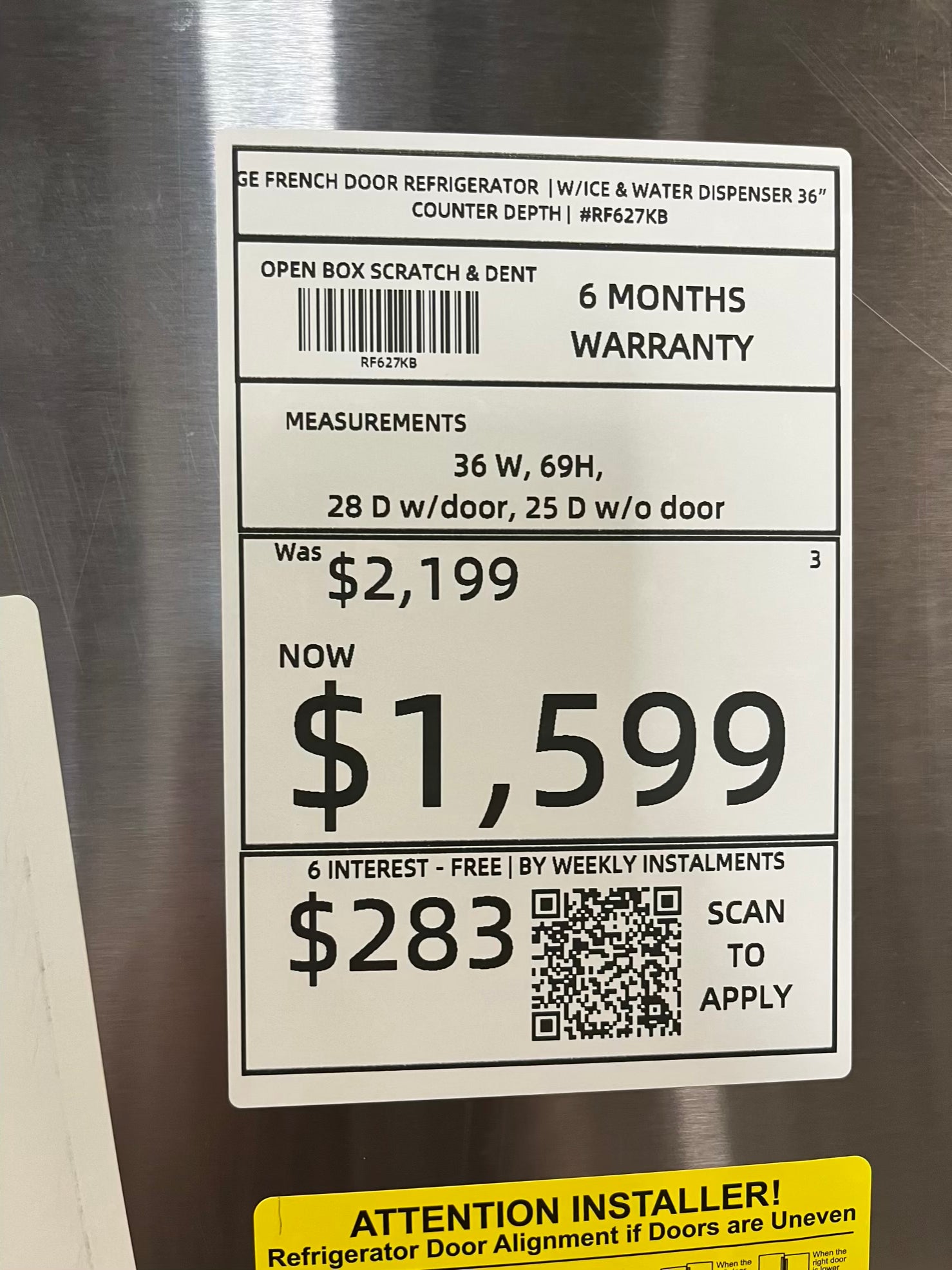 Open Box 📦 GE French Door Refrigerator stainless steel w/ice water dispenser - Item number #RF627KB 36” in