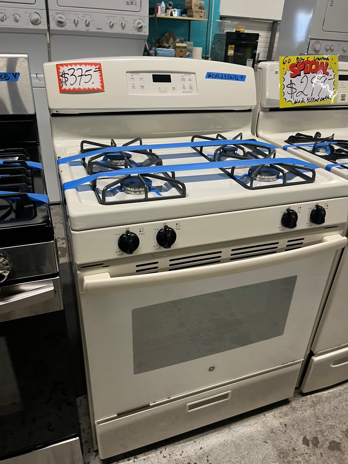- GE Gas range 4 burner bake broil hi/lo in off white Refurbished 30" #GR235WB