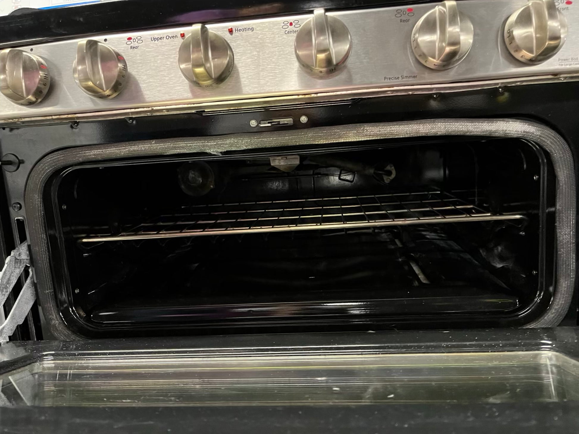 - GE gas range 5 burner double oven convection bake broil stainless steel self clean Refurbished 30" #GR208FB