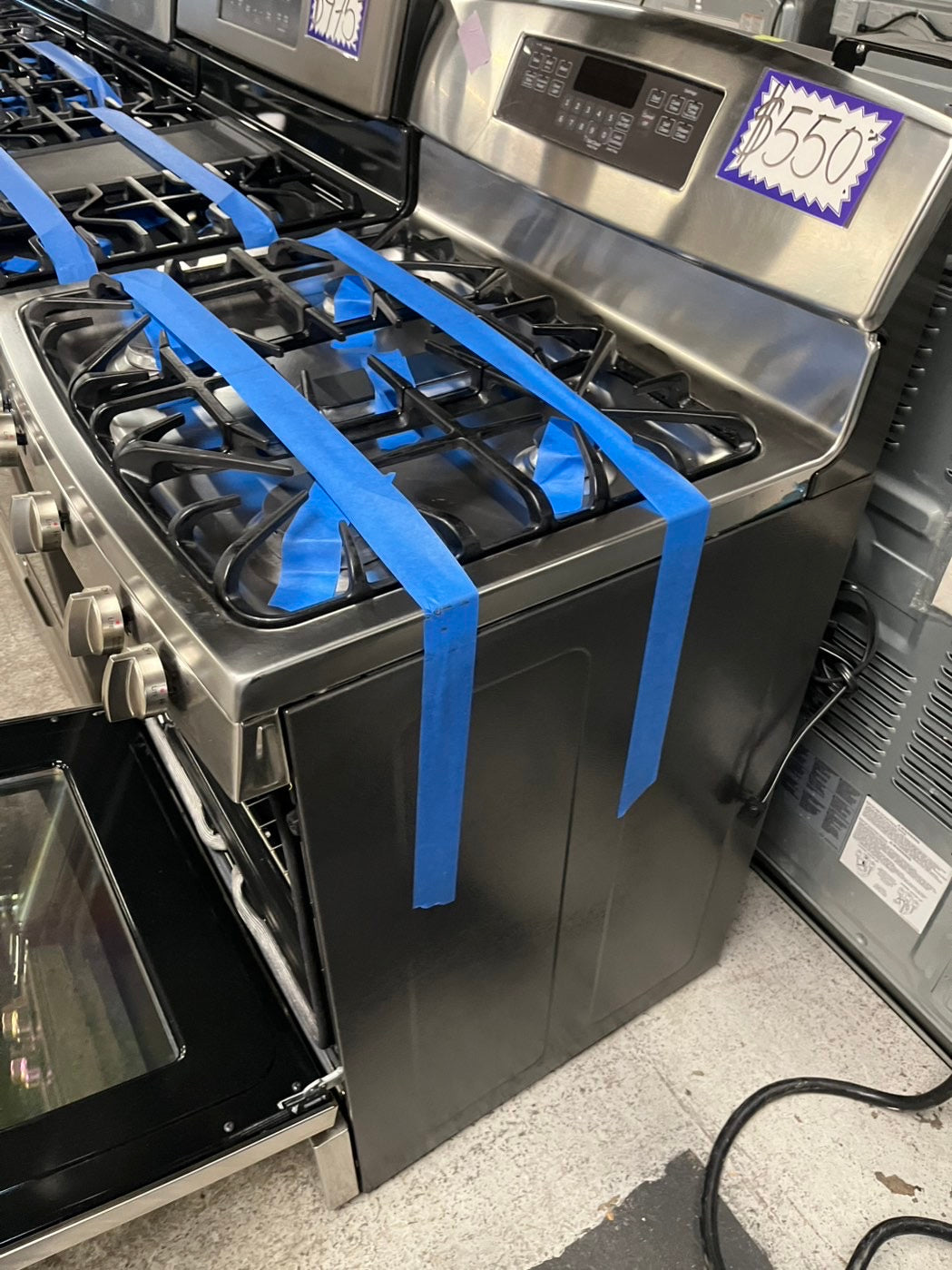 = GE Gas range convection oven 5 burner convection bake broil Hi/Lo self clean in stainless steel -used-Refurbished 30” #GE5TCB