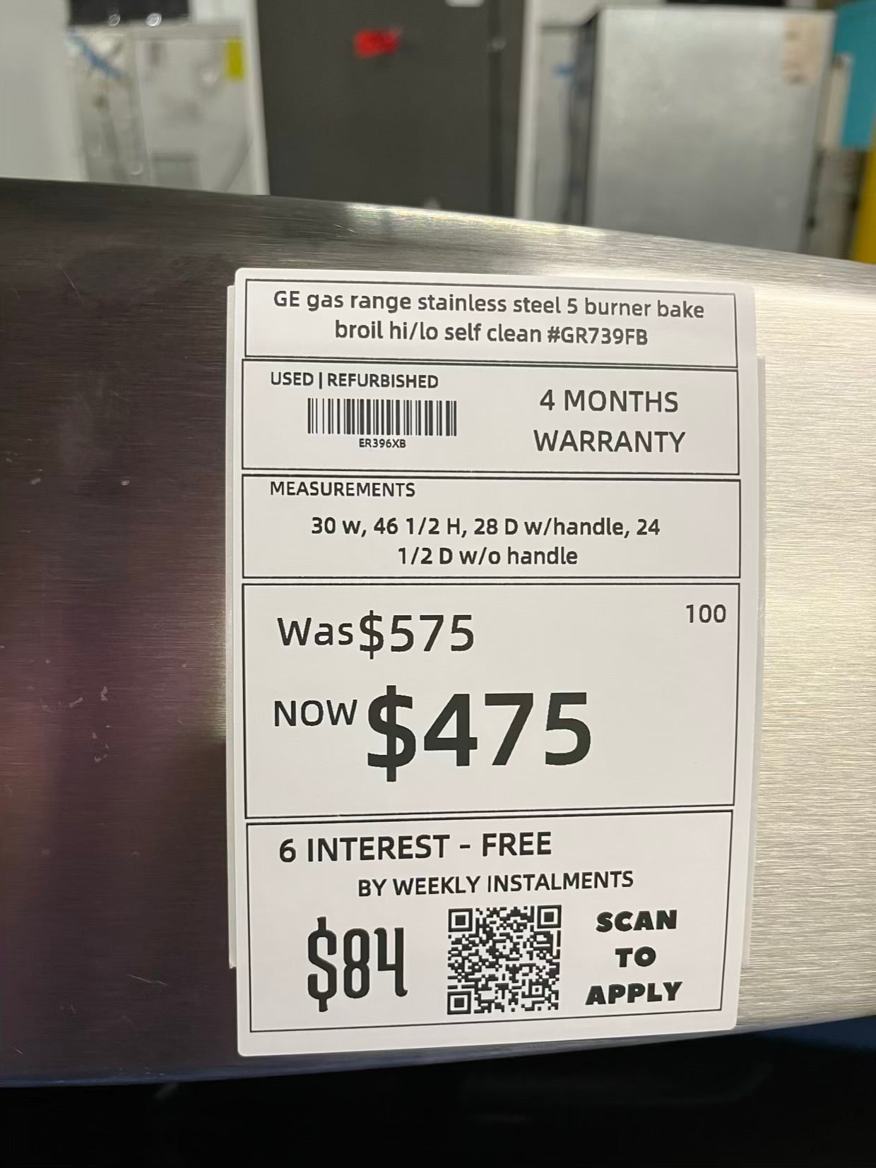 - GE gas range stainless steel 5 burner bake broil hi/lo self clean #GR739FB