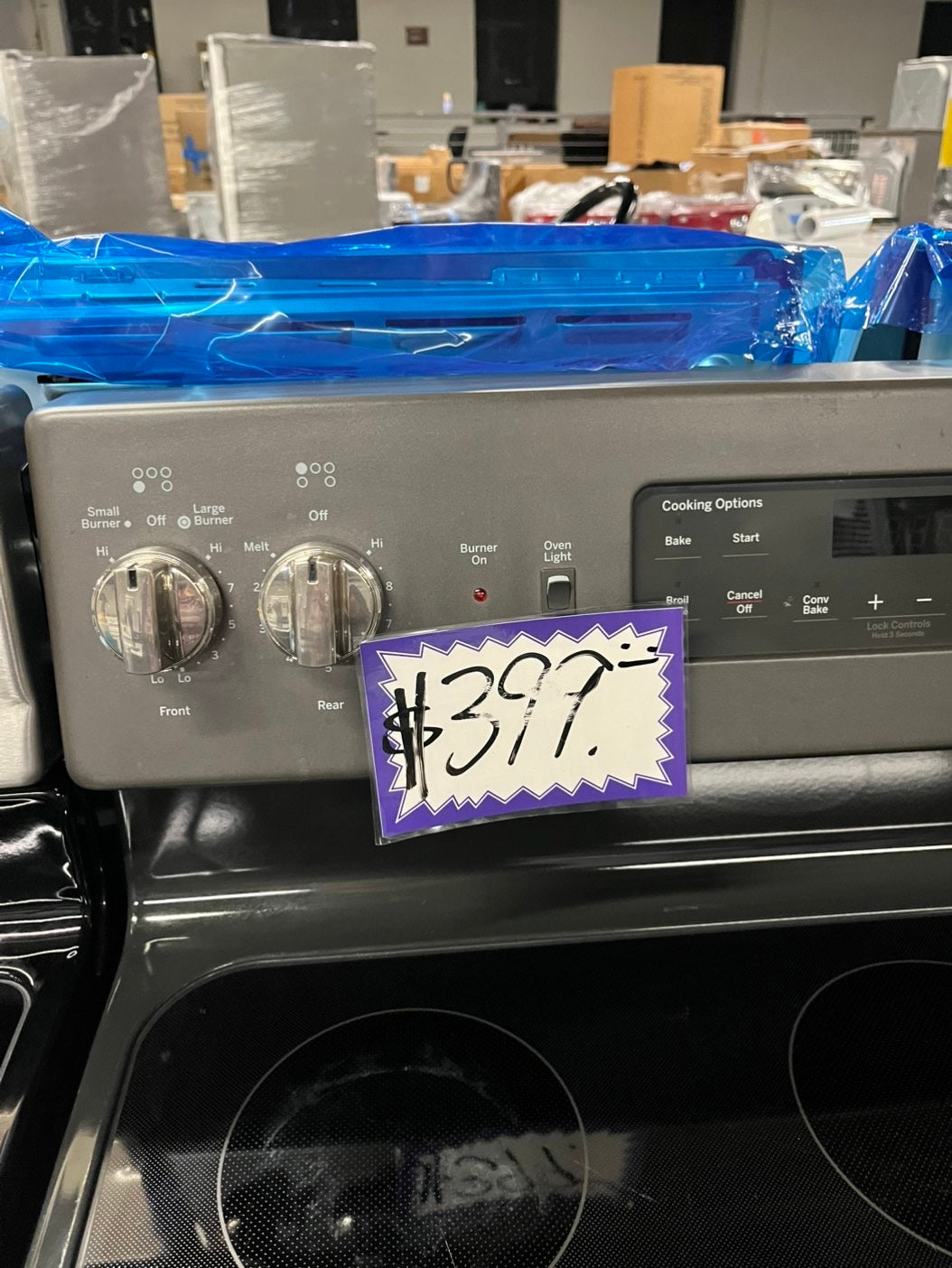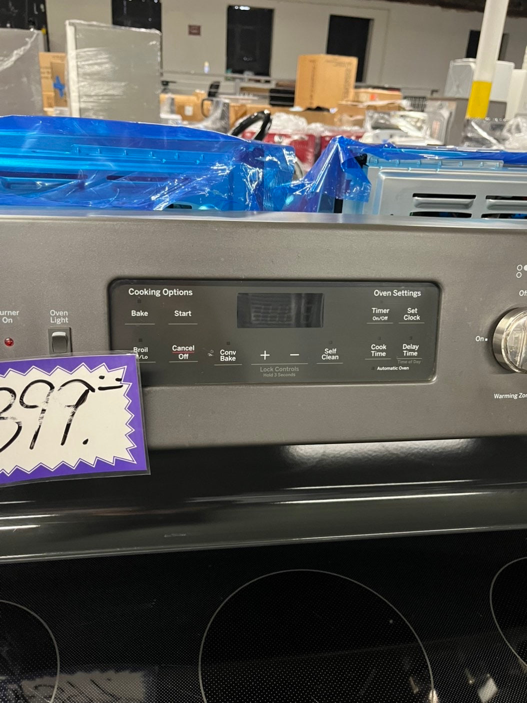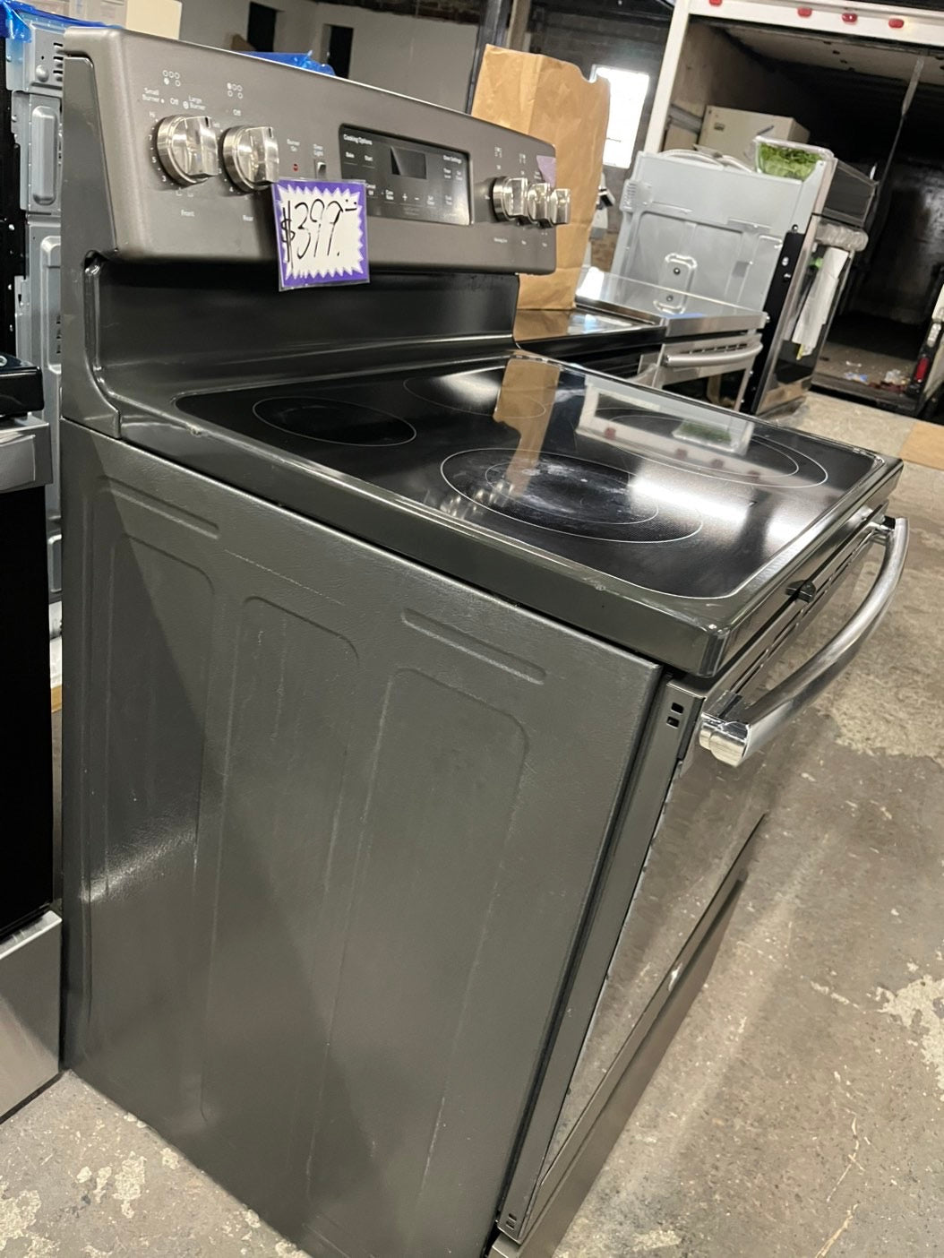 -GE glass top electric range 220V 5 burner warm zone convection bake broil power boil self clean Refurbished Slate 30" #ERS89B