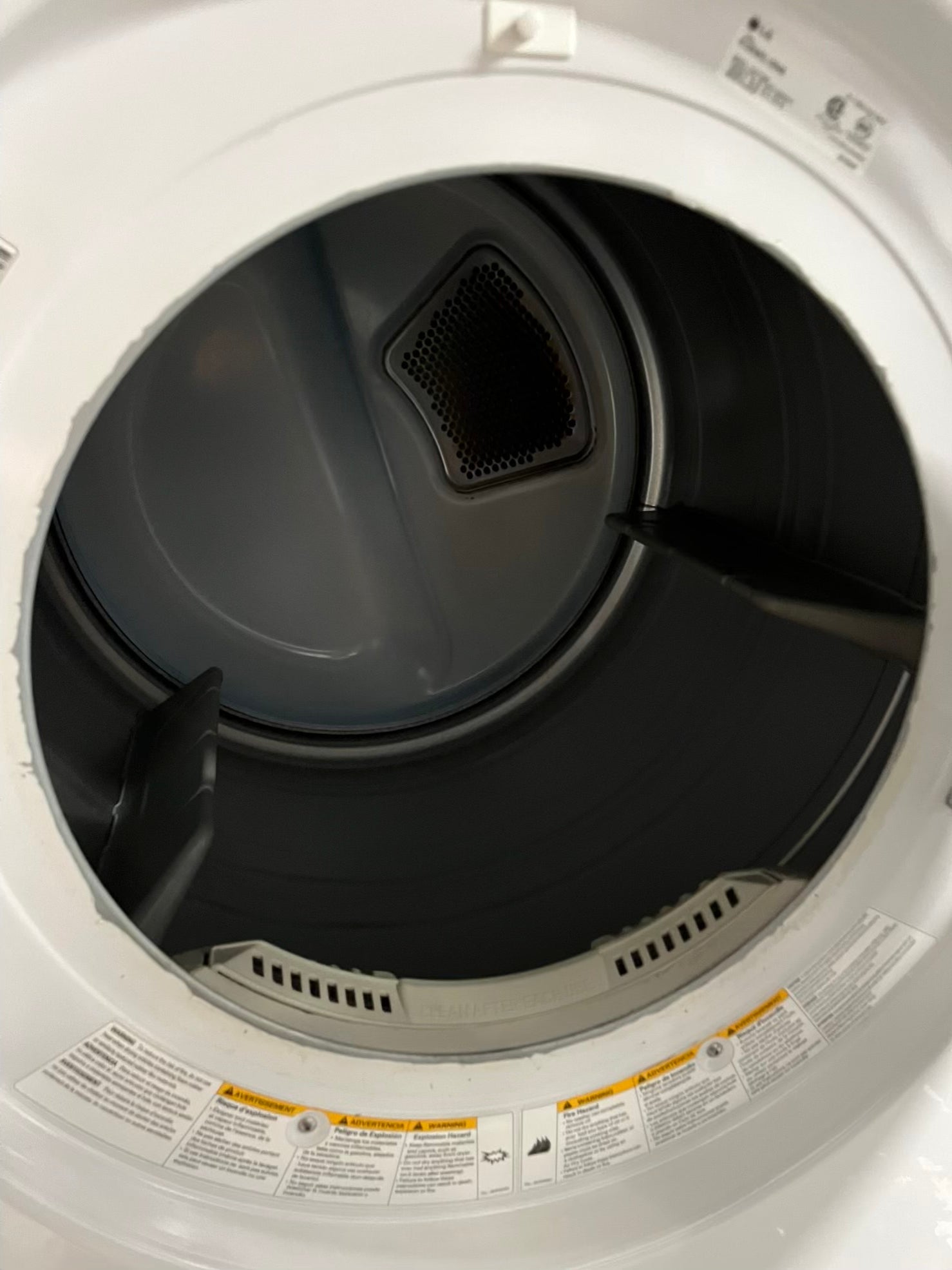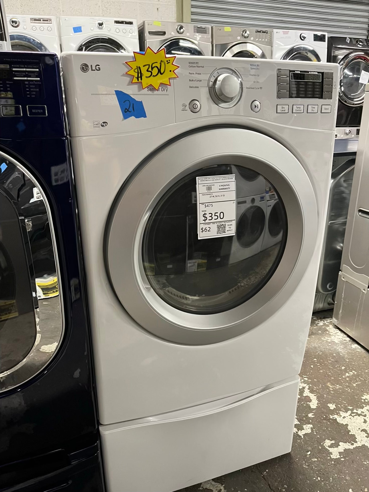 LG Dryer electric 220v in white front load w/pedestal extra storage stainless steel drum large capacity 27" refurbished #ED340SB