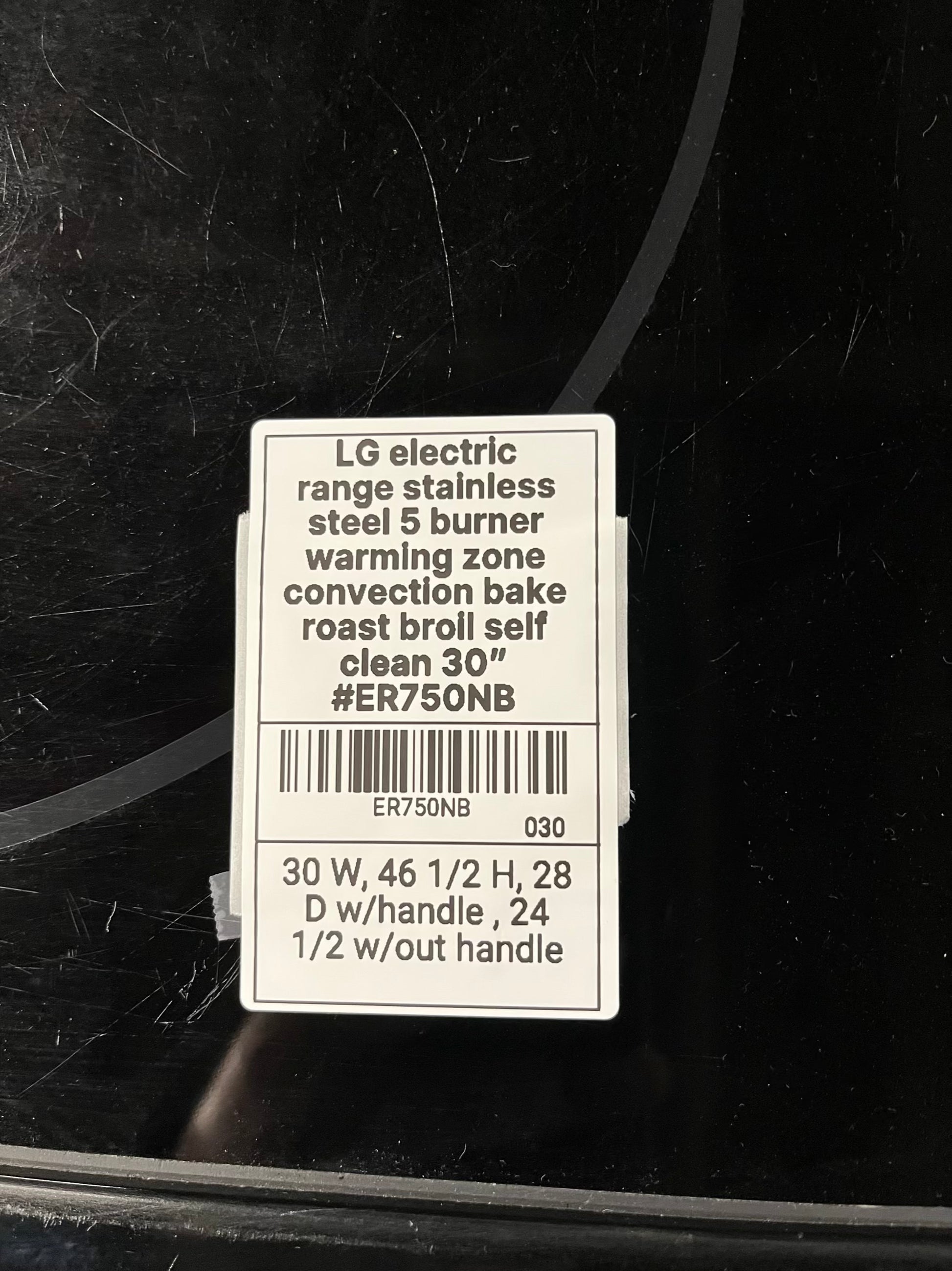 LG electric range stainless steel 5 burner warming zone convection bake roast broil self clean 30" #ER750NB