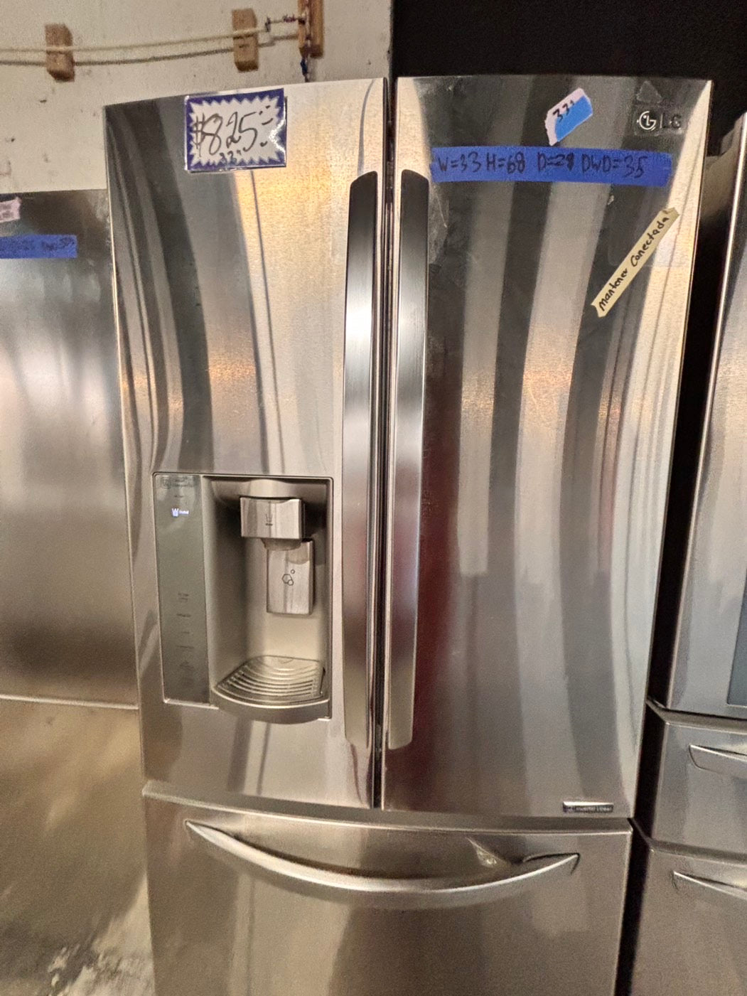 >LG French door Refrigerator stainless steel w/ ice water dispenser 33" #RF26FQB