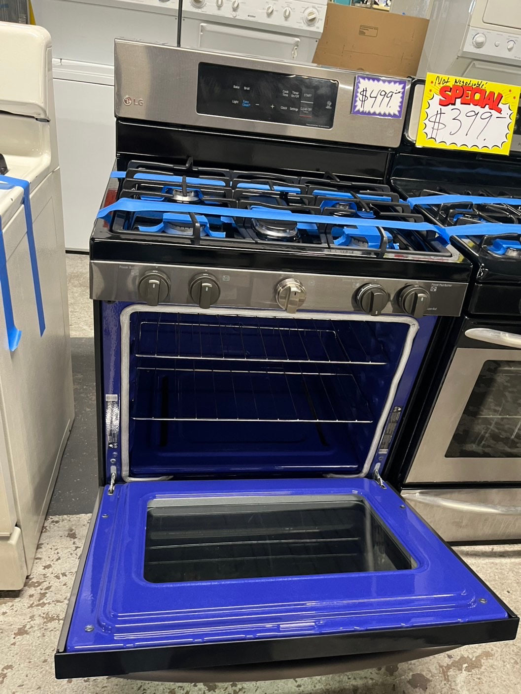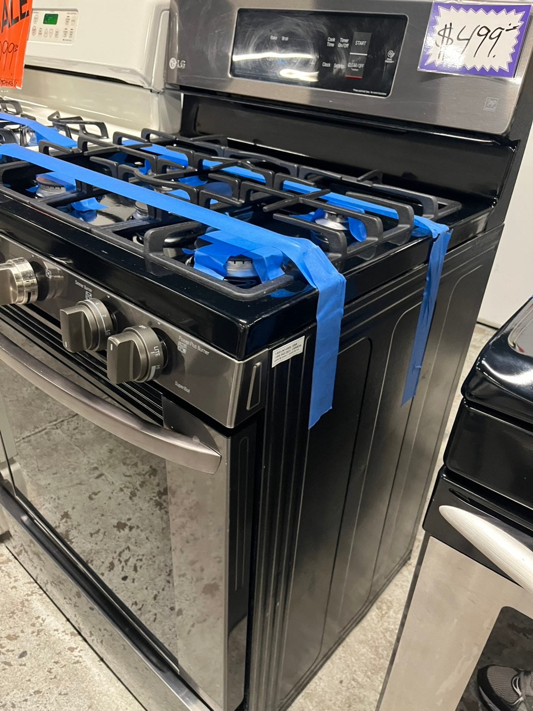 - LG gas range Black stainless steel 5 burner bake broil self clean 30" #GR122B