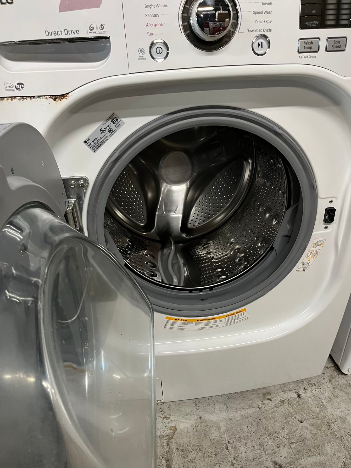 LG steam cycle washer 4.5 cu ft & dryer 7.5 cu ft set electric 220v front load stackable sensor dry He In white #WD854JB