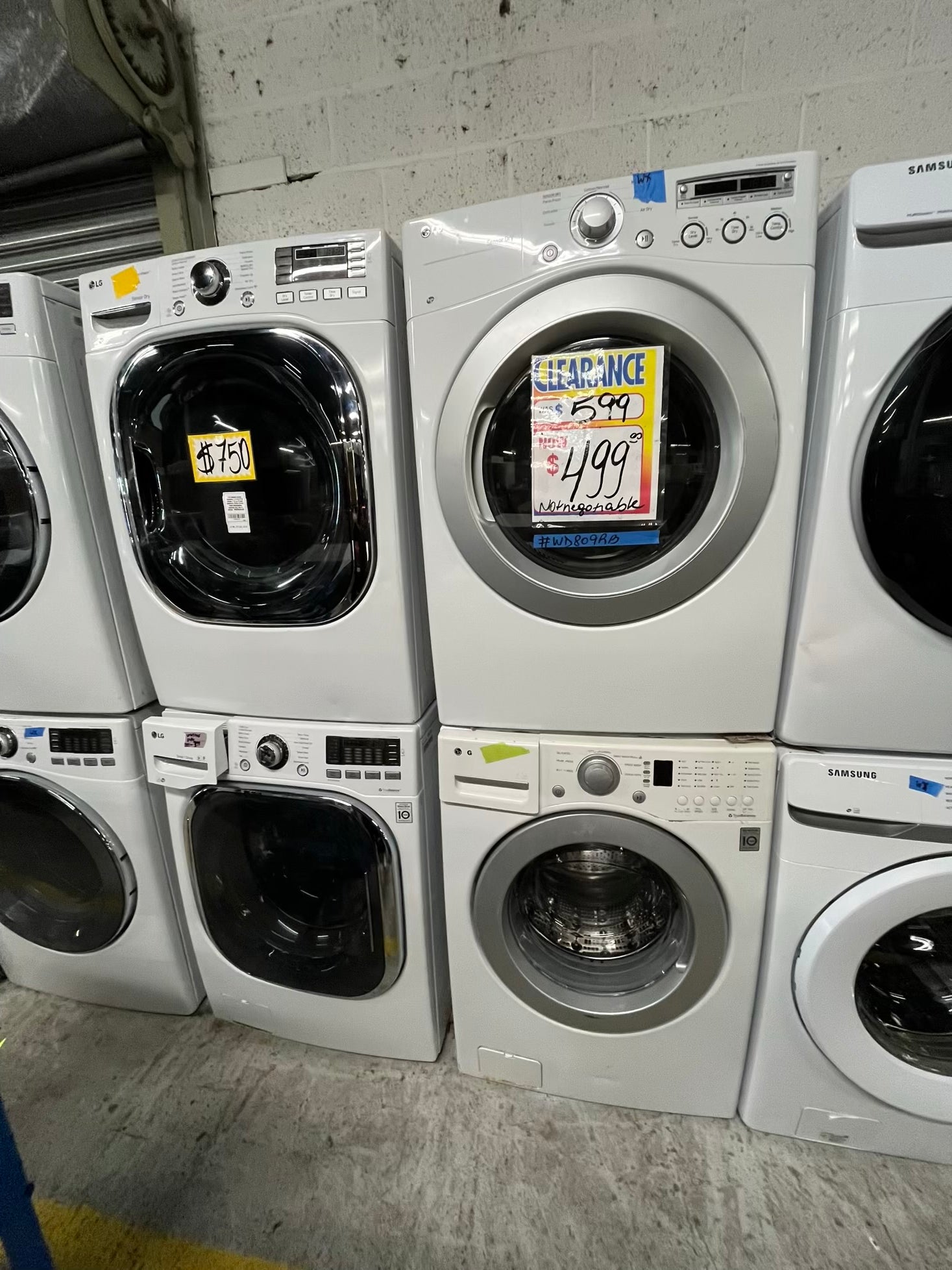 LG washer 4.5 cu ft & dryer 7.5 cu ft set electric 220v front load stackable sensor dry He in white #WD809RB