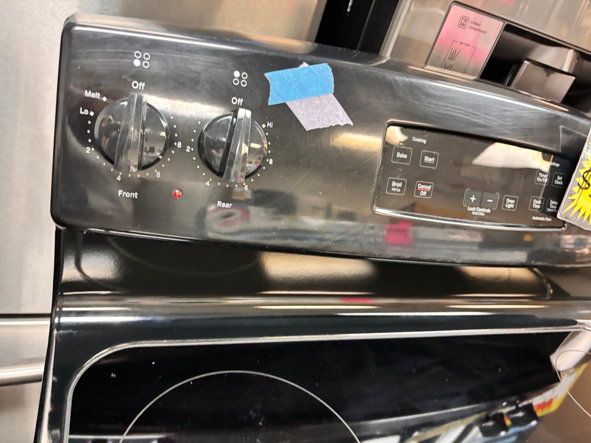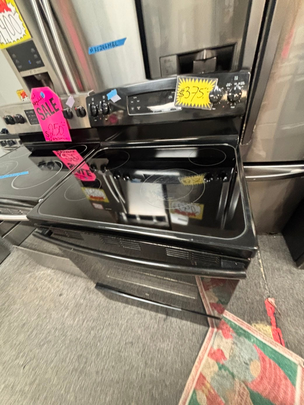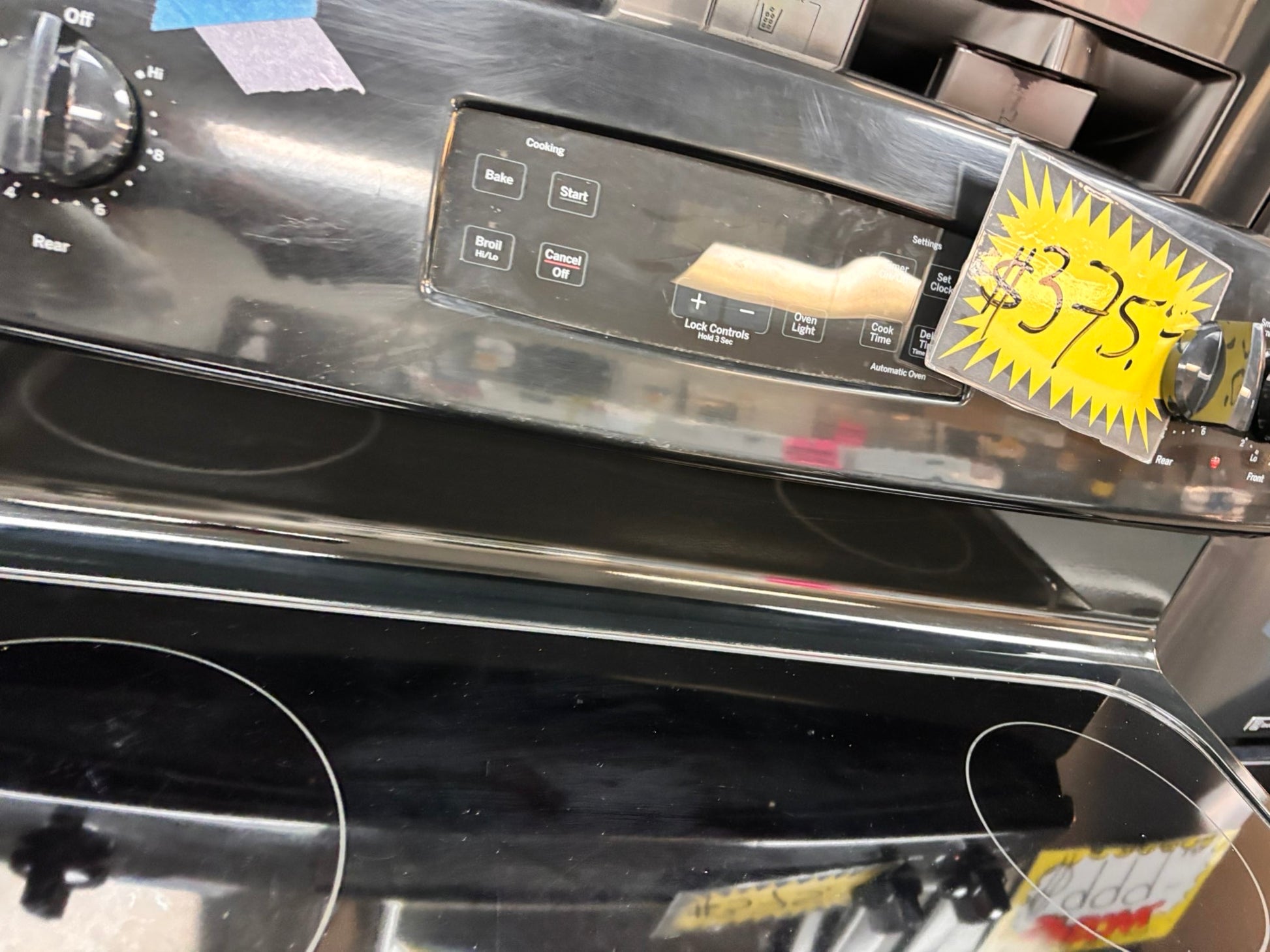 >GE Glass Top electric stove black bake broil 4 burner Self clean 30” black Refurbished #BBW96B