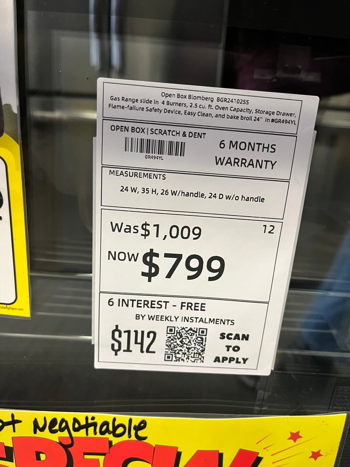 Open Box 📦 Blomberg BGR24102SS Gas Range slide in 4 Burners, 2.5 cu. ft. Oven Capacity, Storage Drawer, Flame-failure Safety Device, Easy Clean, and bake broil 24" in #GR494YL