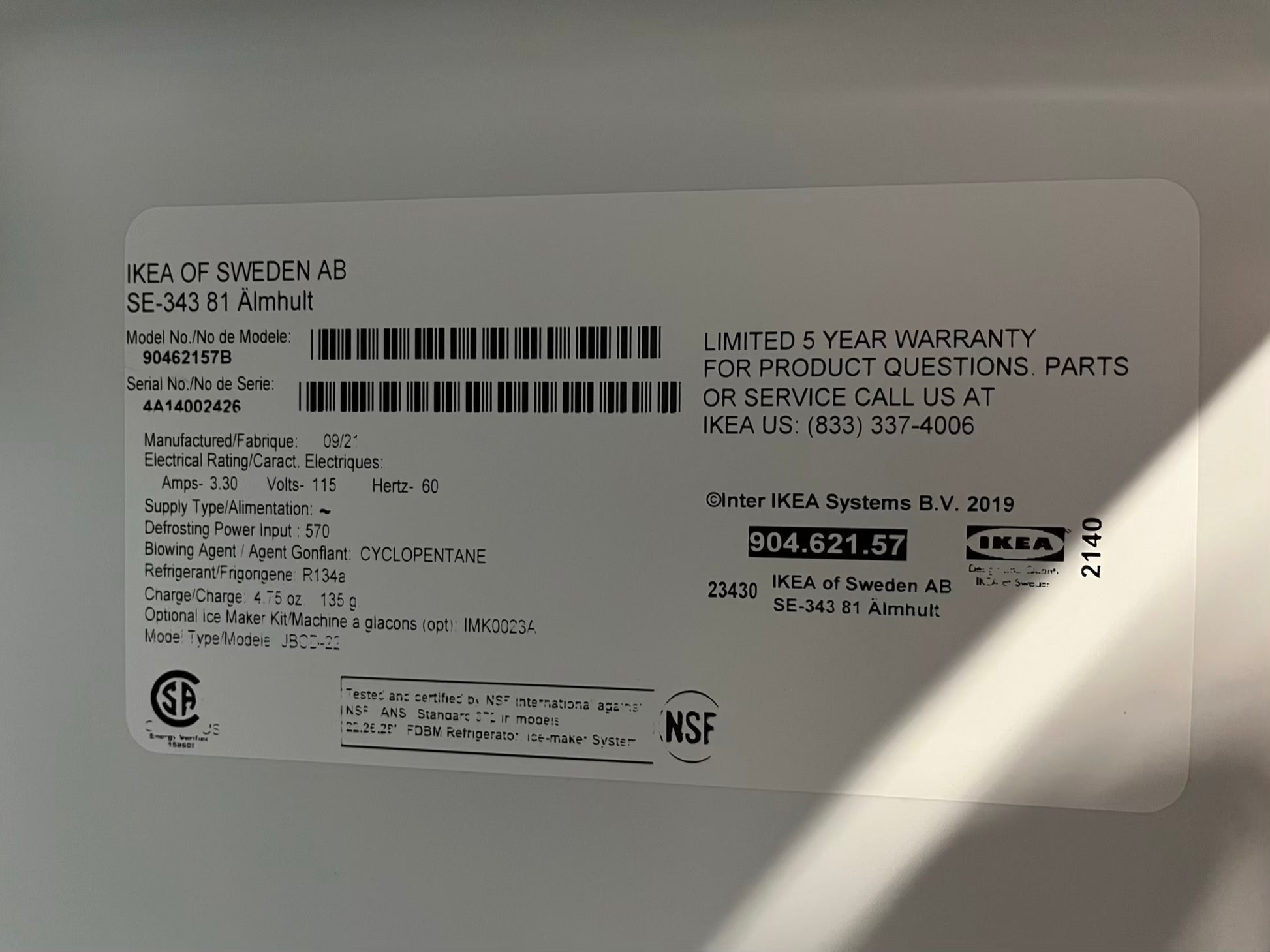 Open Box Ikea French door refrigerator slate counter depth w/ice water dispenser 36" #RF493YB-TR