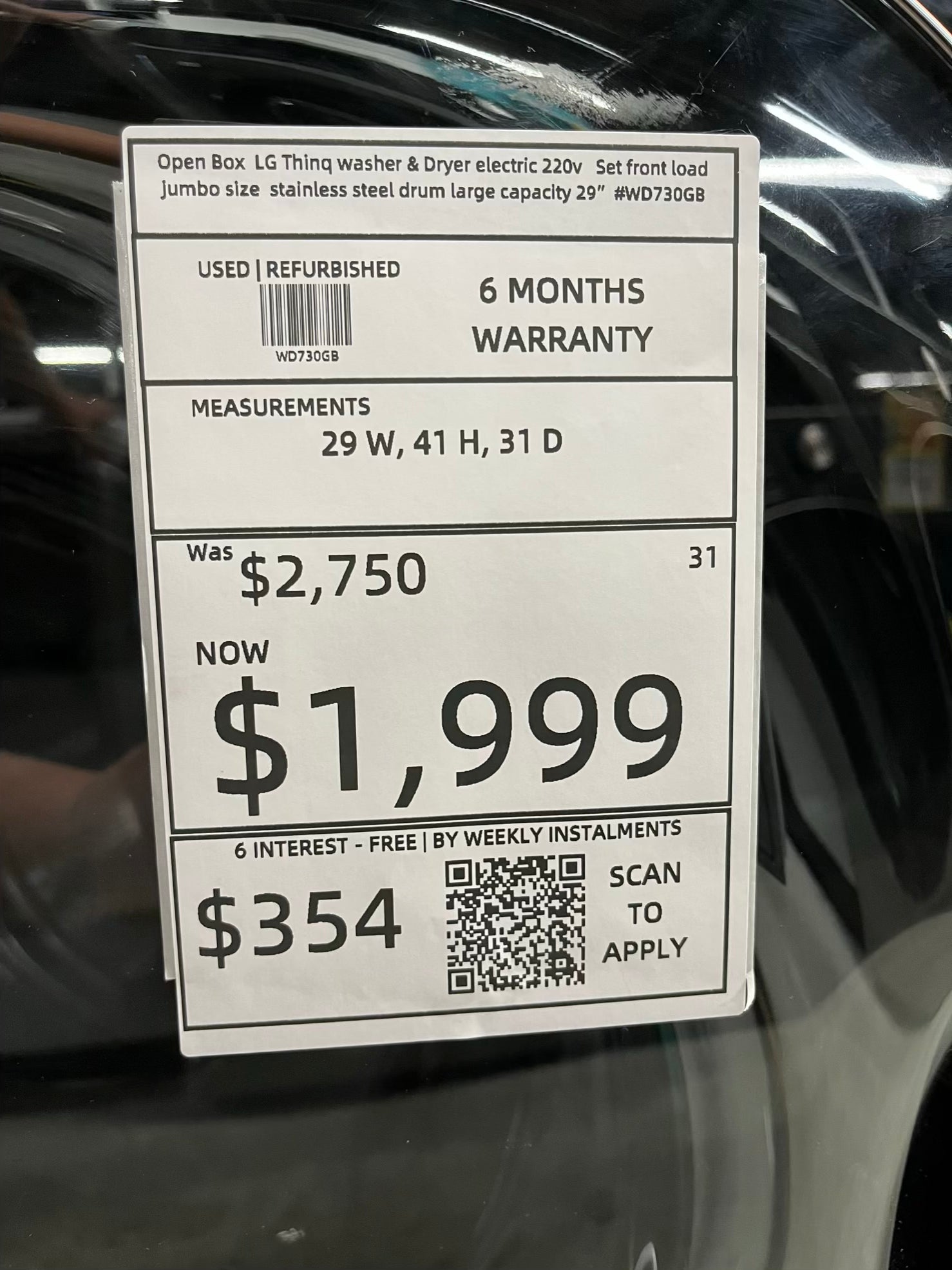 - Open Box 📦 LG Thing washer & Dryer electric 220v Set front load jumbo size stainless steel drum large capacity 29" #WD730GB-TR
