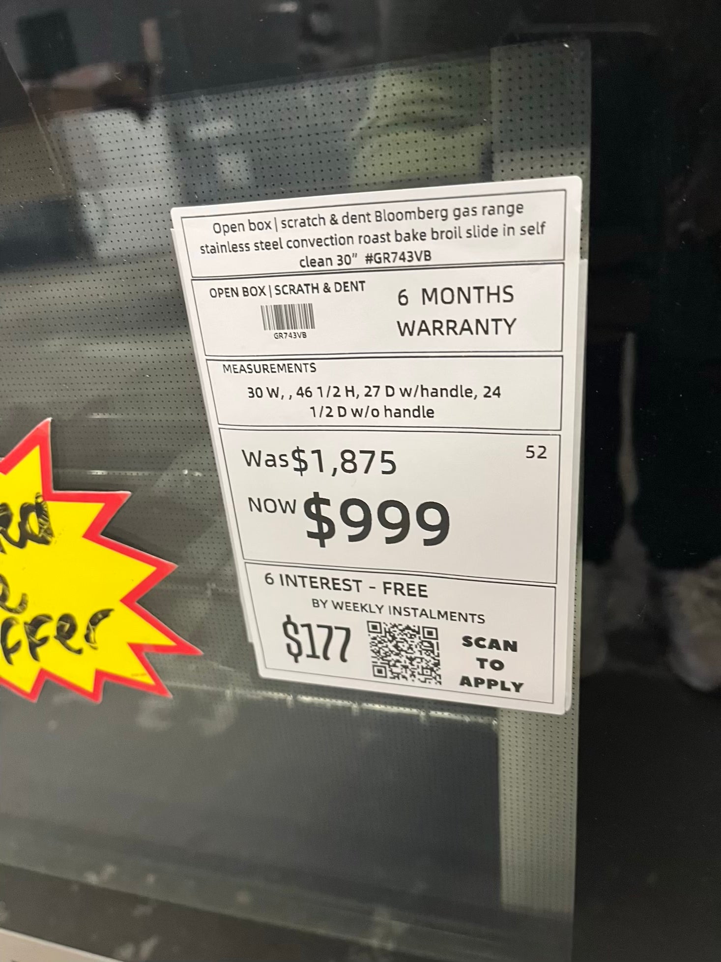 - Open box | scratch & dent Bloomberg gas range stainless steel convection roast bake broil slide in self clean 30" #GR743VB