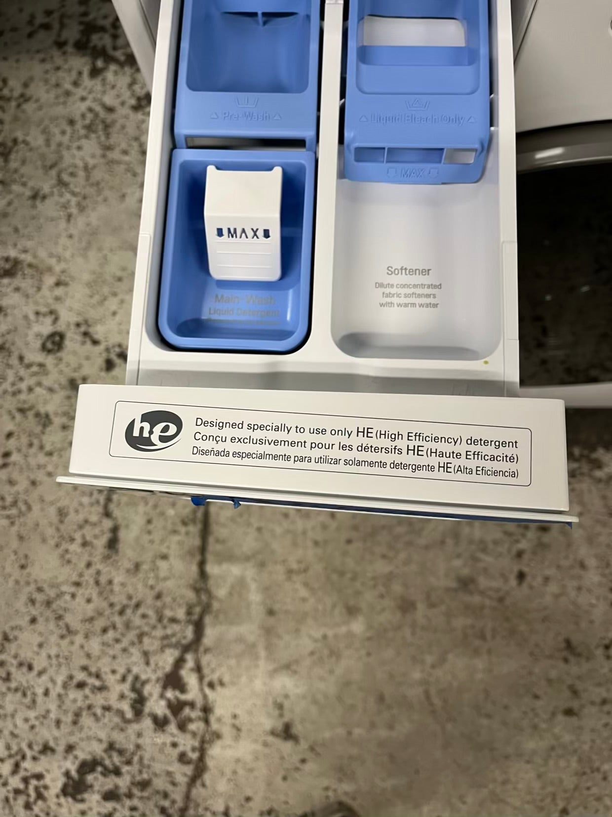Open Box 📦 Scratch & Dent mix match LG 4.5 cu. ft. Capacity Smart Front Load ENERGY STAR Washer with TurboWash® 360° Al & Samsung 7.5 cu. ft. Vented Smart Stackable Electric 220v Dryer In White w/ Steam 27" in #WD634NB