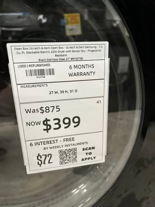 Open Box | Scratch & dent Open Box - Scratch & Dent Samsung - 7,5 Cu. Ft. Stackable Electric 220v Dryer with Sensor Dry - Fingerprint Resistant Black Stainless Steel 27” #RF2075B