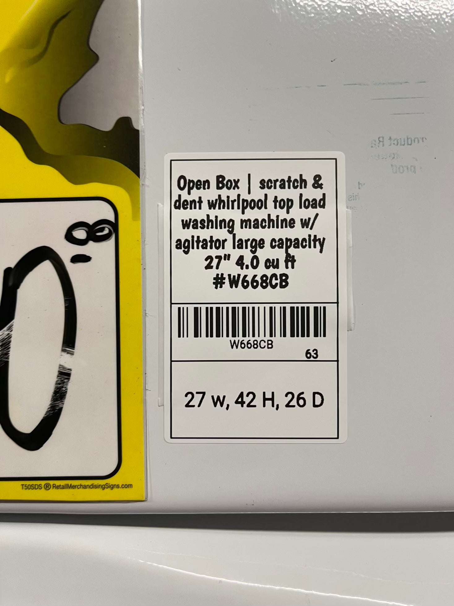 - Open Box | scratch & dent whirlpool top load washing machine w/ agitator large capacity 27" 4.0 cutt #W668CB
