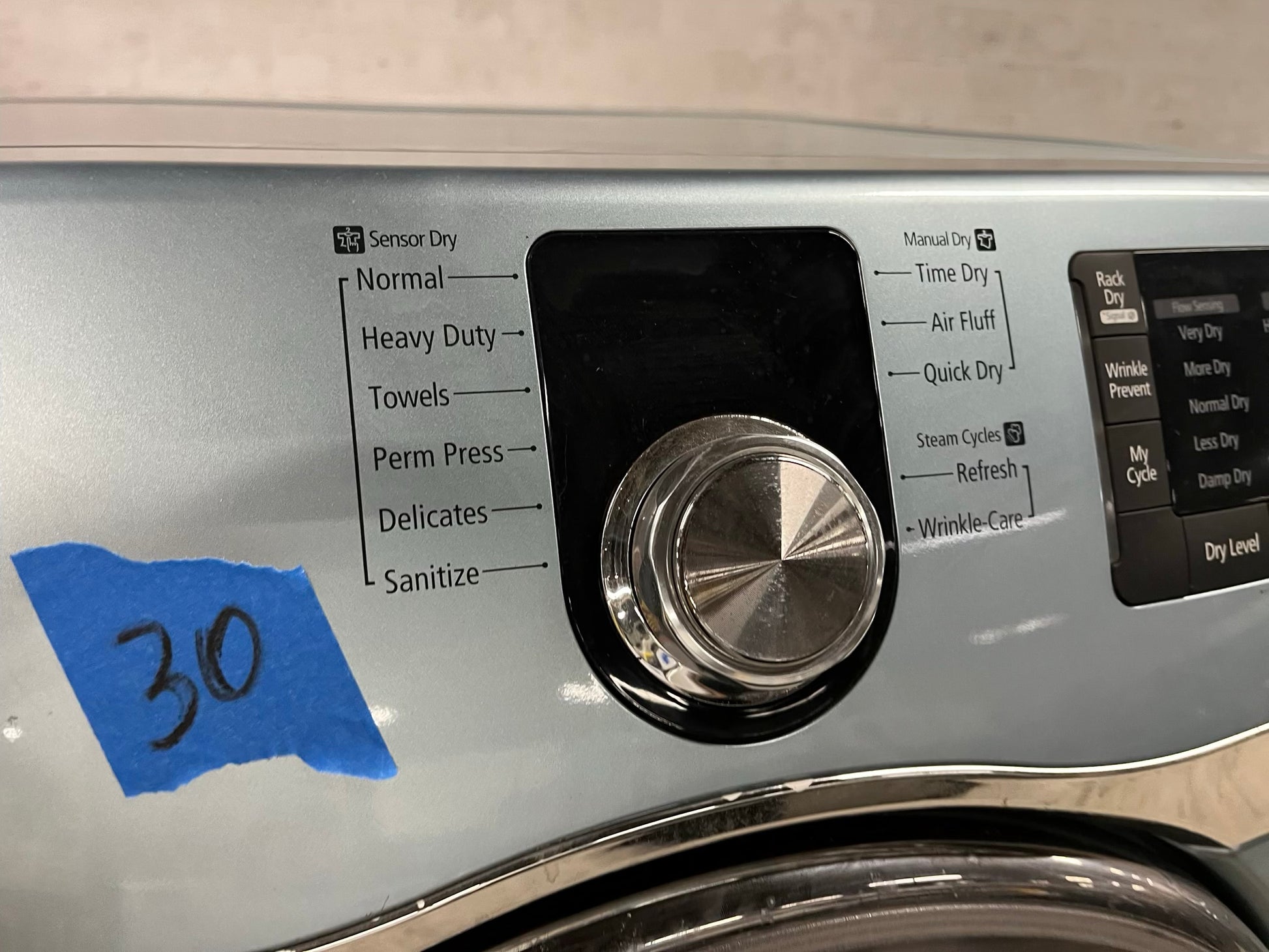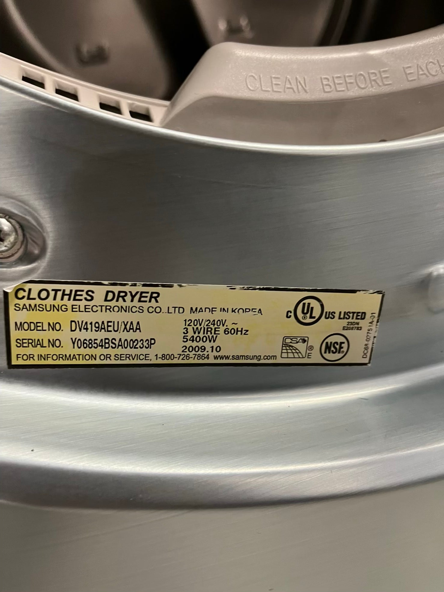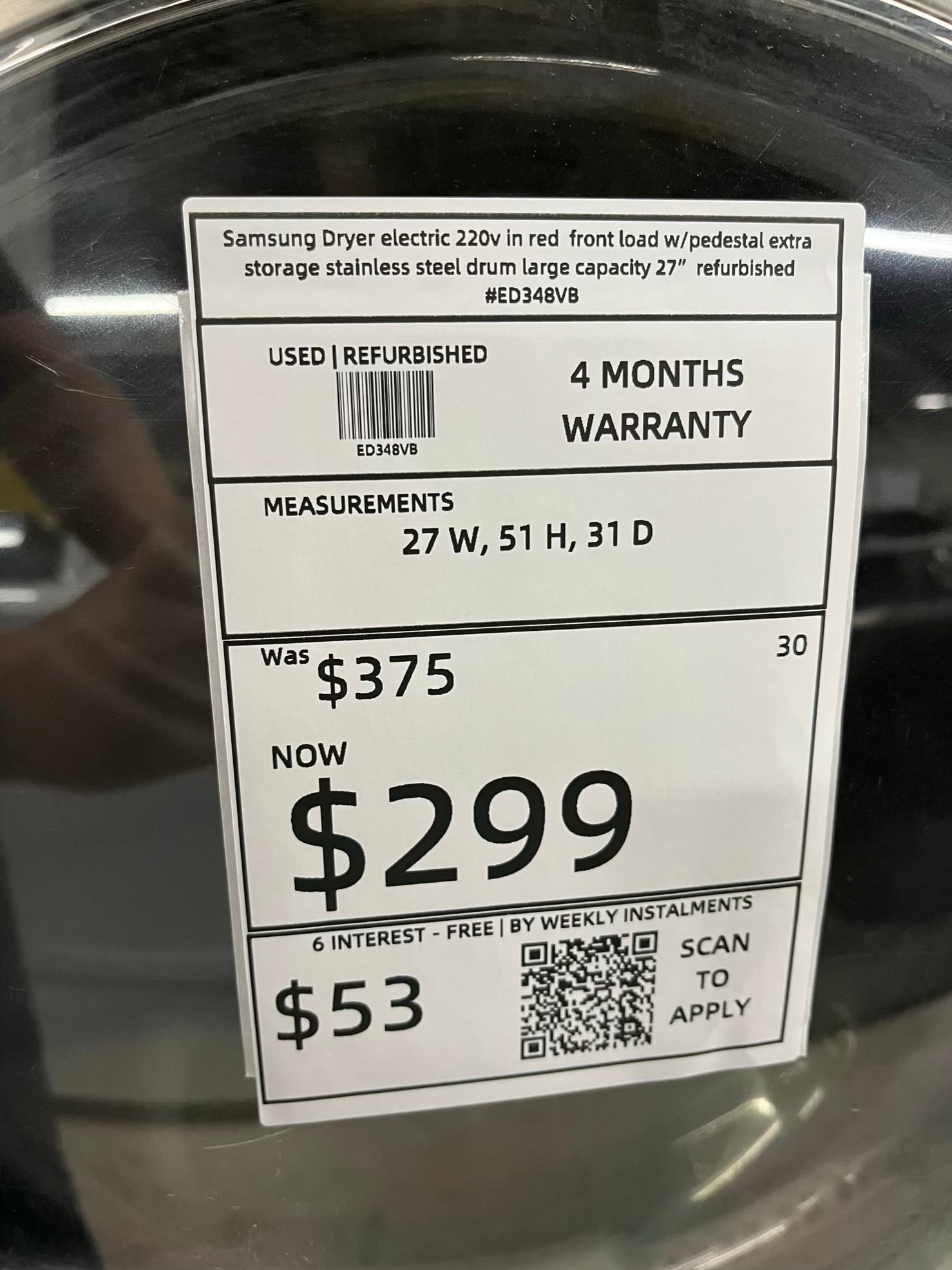 Samsung Dryer electric 220v in red front load w/pedestal extra storage stainless steel drum large capacity 27" refurbished #ED348VB