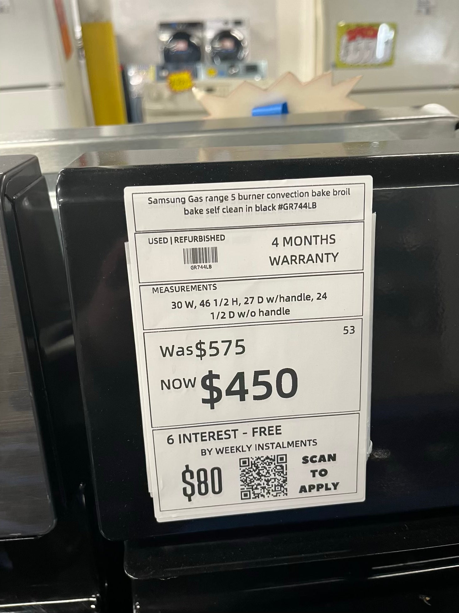 - Samsung Gas range 5 burner convection bake broil bake self clean in black #GR744LB