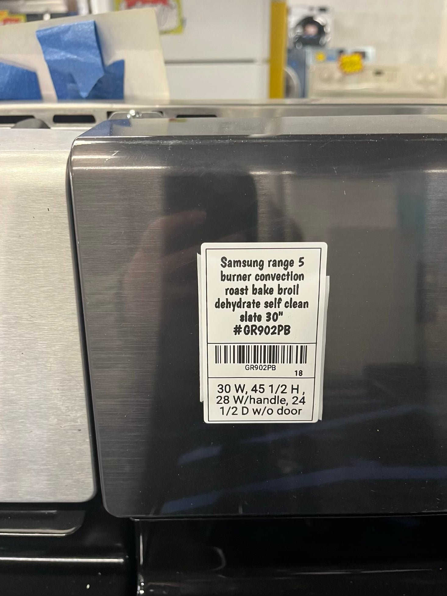 - Samsung range 5 burner convection roast bake broil dehydrate self clean slate 30" #GR902PB