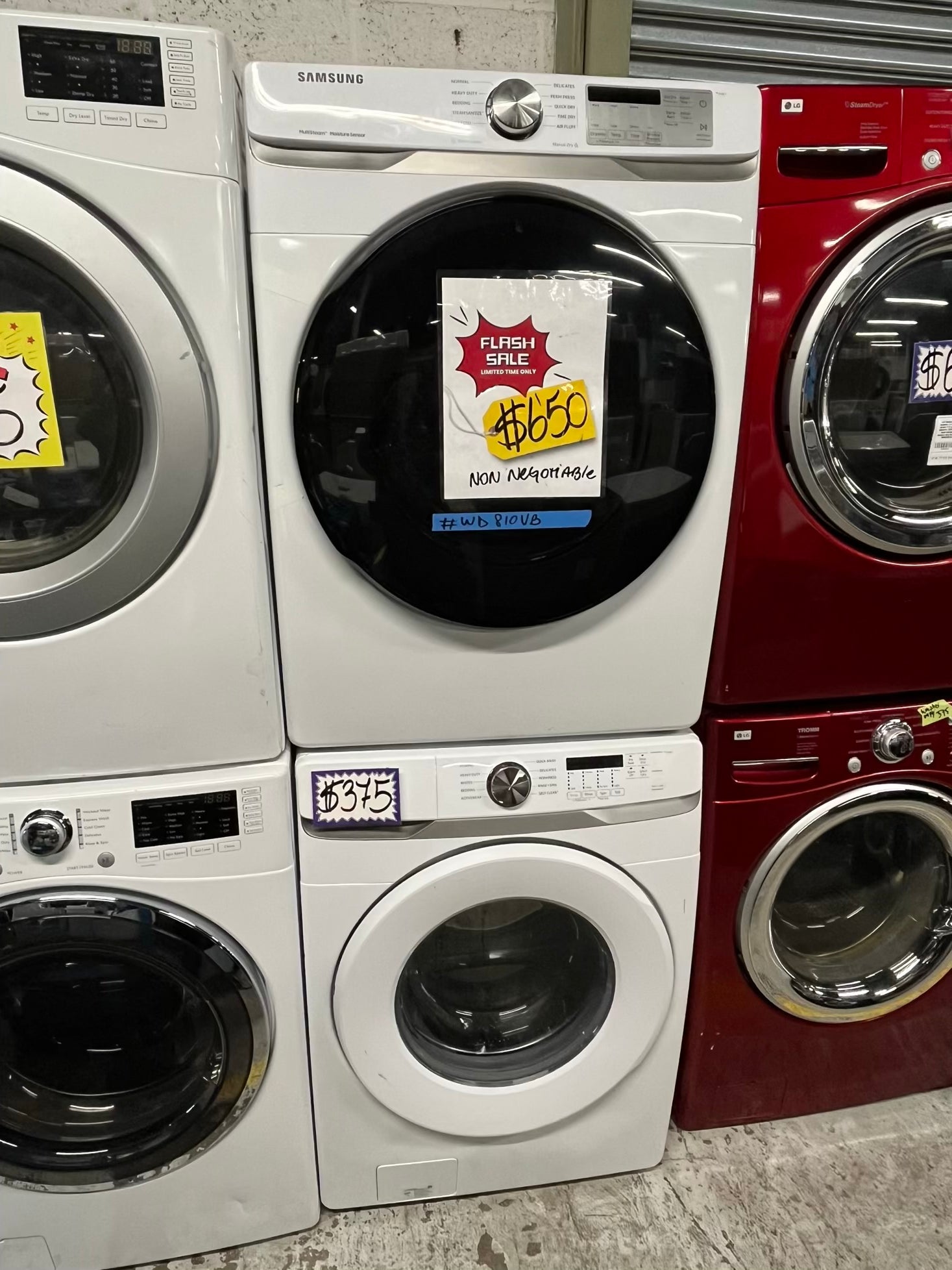 Samsung washer 4.5 cu ft & dryer 7.5 cu ft set electric 220v front load stackable or side by side -sensor dry He in white #WD810VB