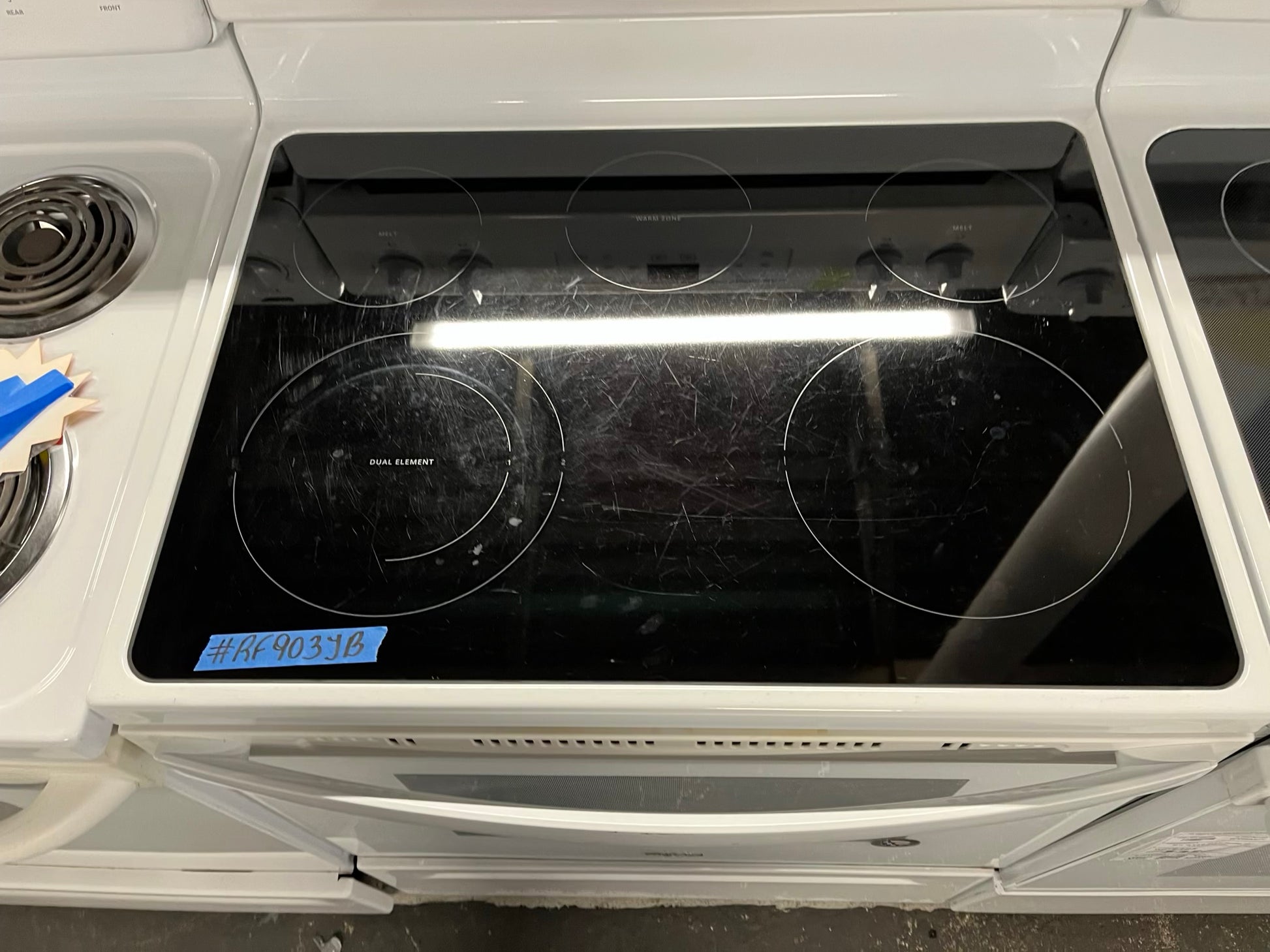Whirlpool electric range 5 burner warming zone bake broil frozen bake in white 30” #RF903JB