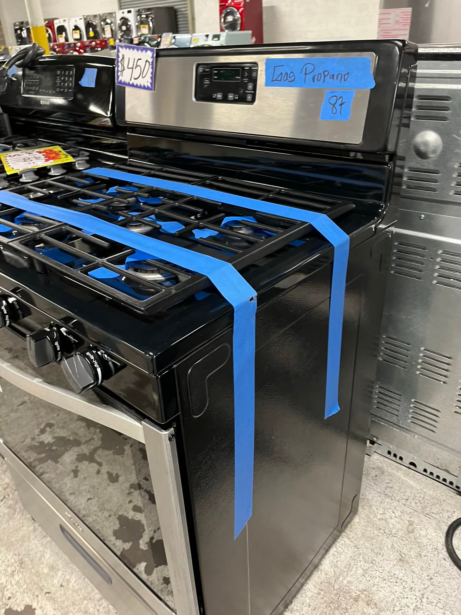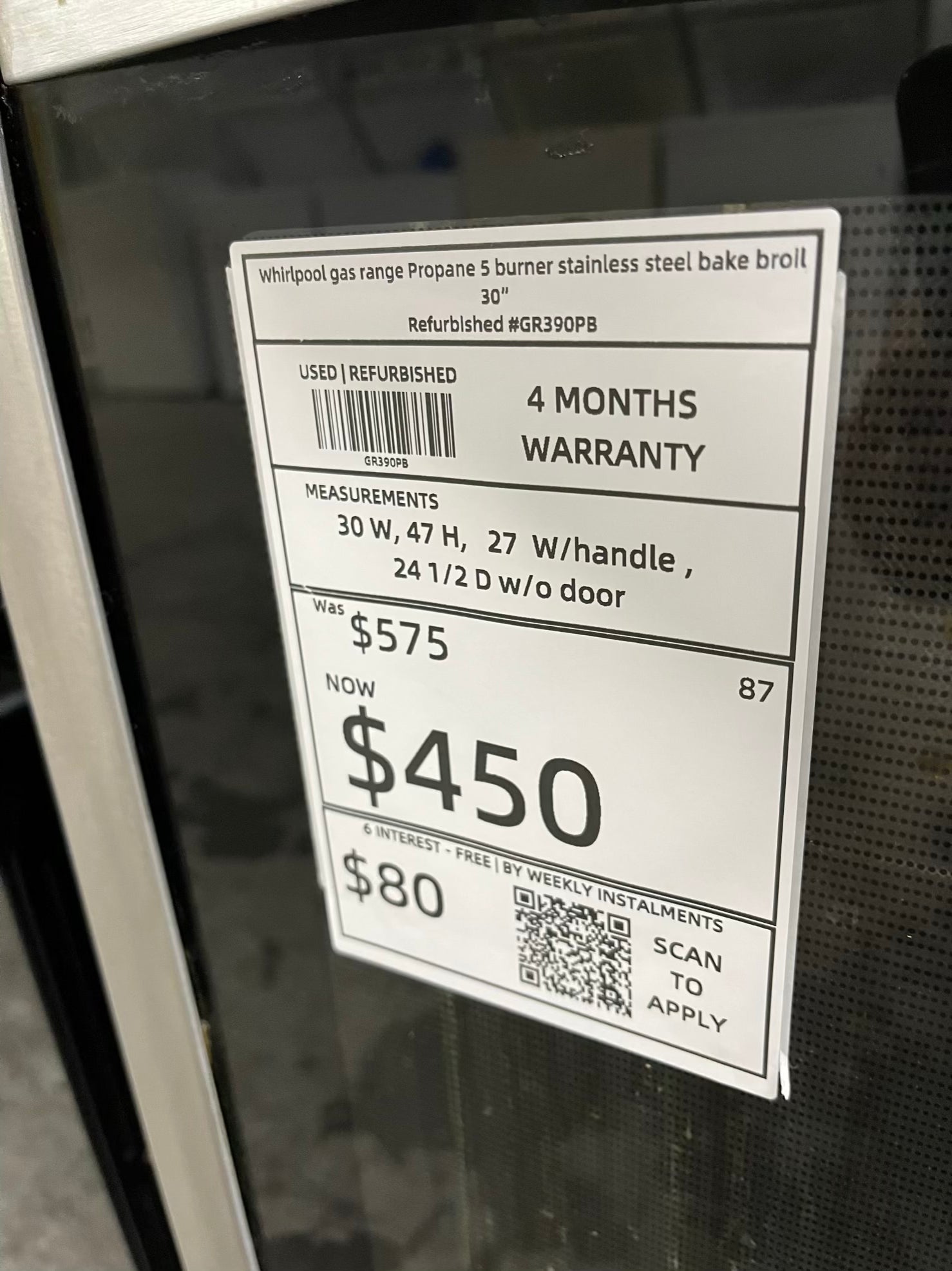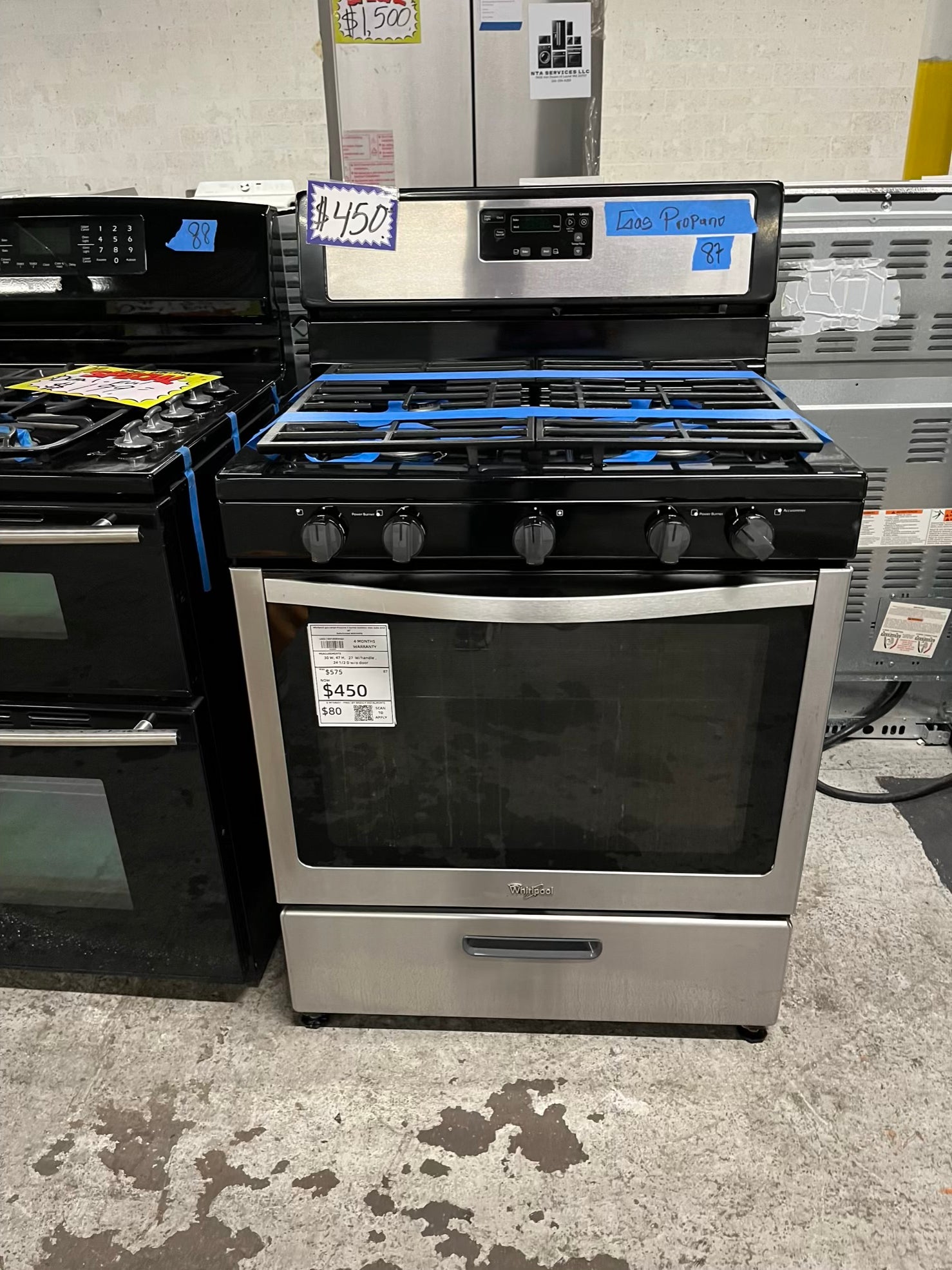 - Whirlpool gas range Propane 5 burner stainless steel bake broll 30" RefurbIshed #GR390PB