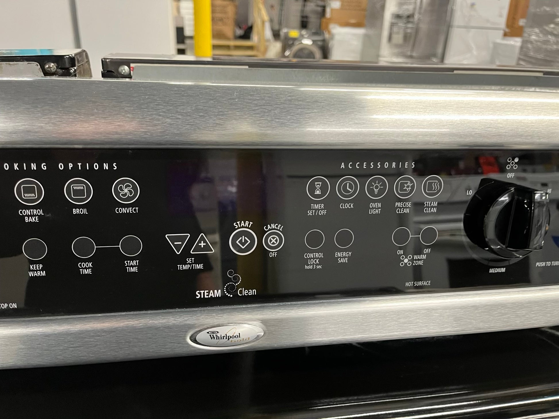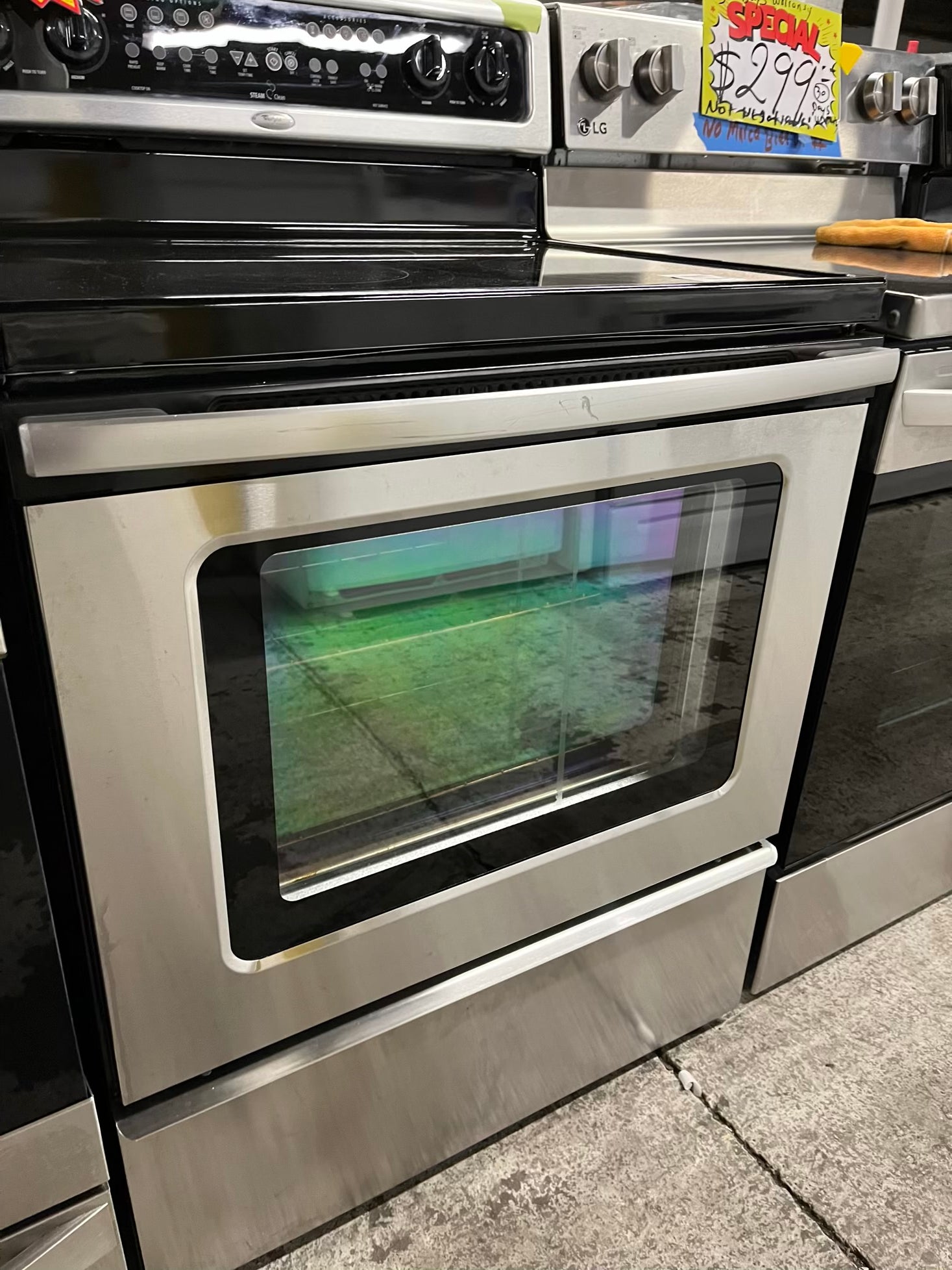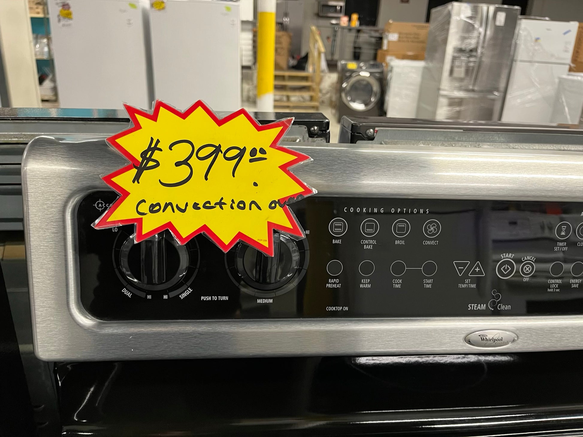Whirlpool Glass top electric 220v range 5 burner warm zone convection bake broil steam clean stainless steel 30" Refurbished #ER748KB