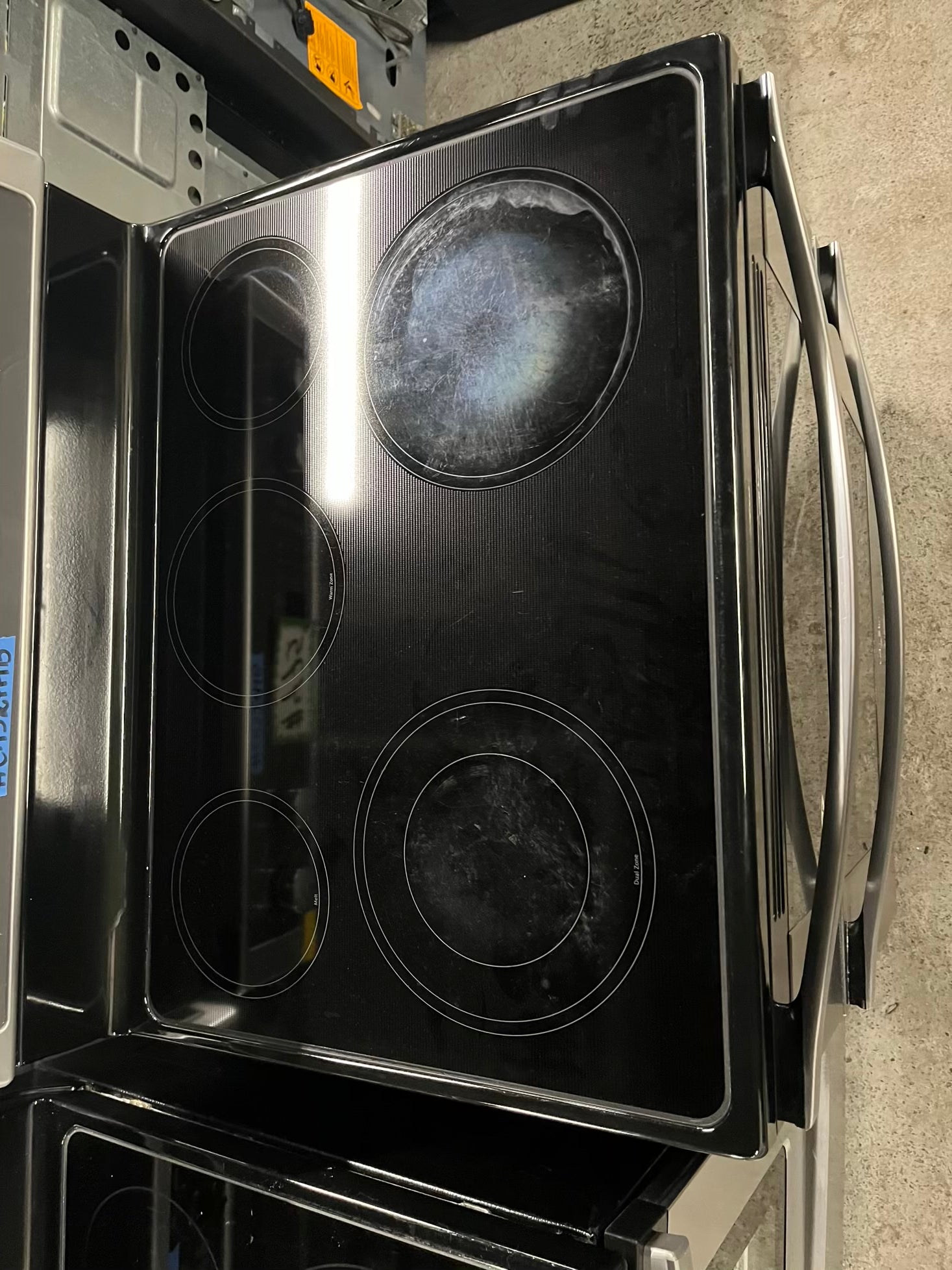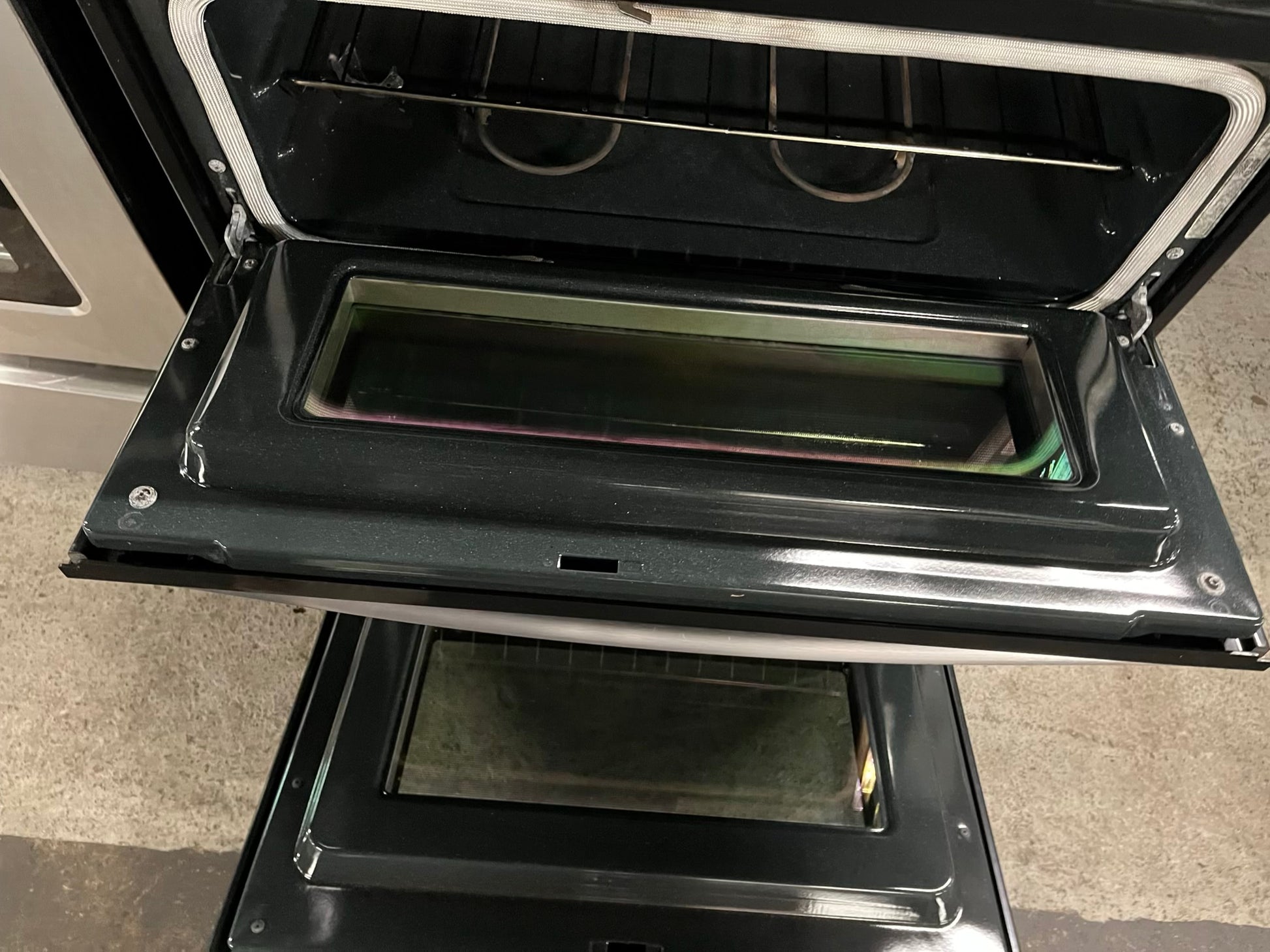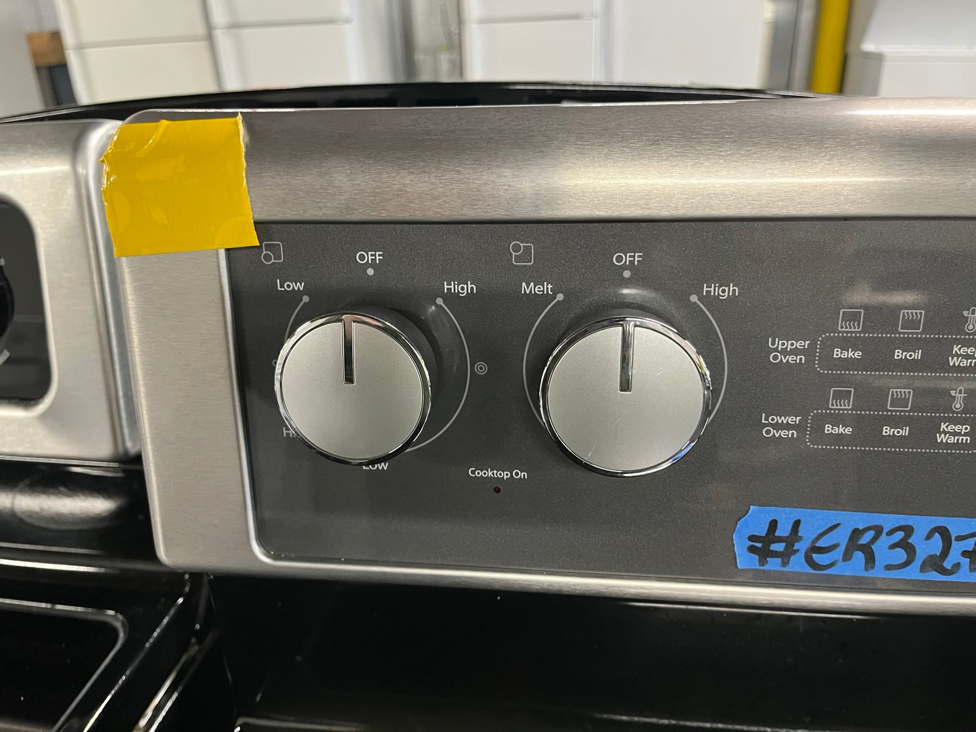 - Whirlpool glass top electric range 220v 5 burner warm zone bake broil steam clean Refurbished double oven stainless steel 30" #ER327HB