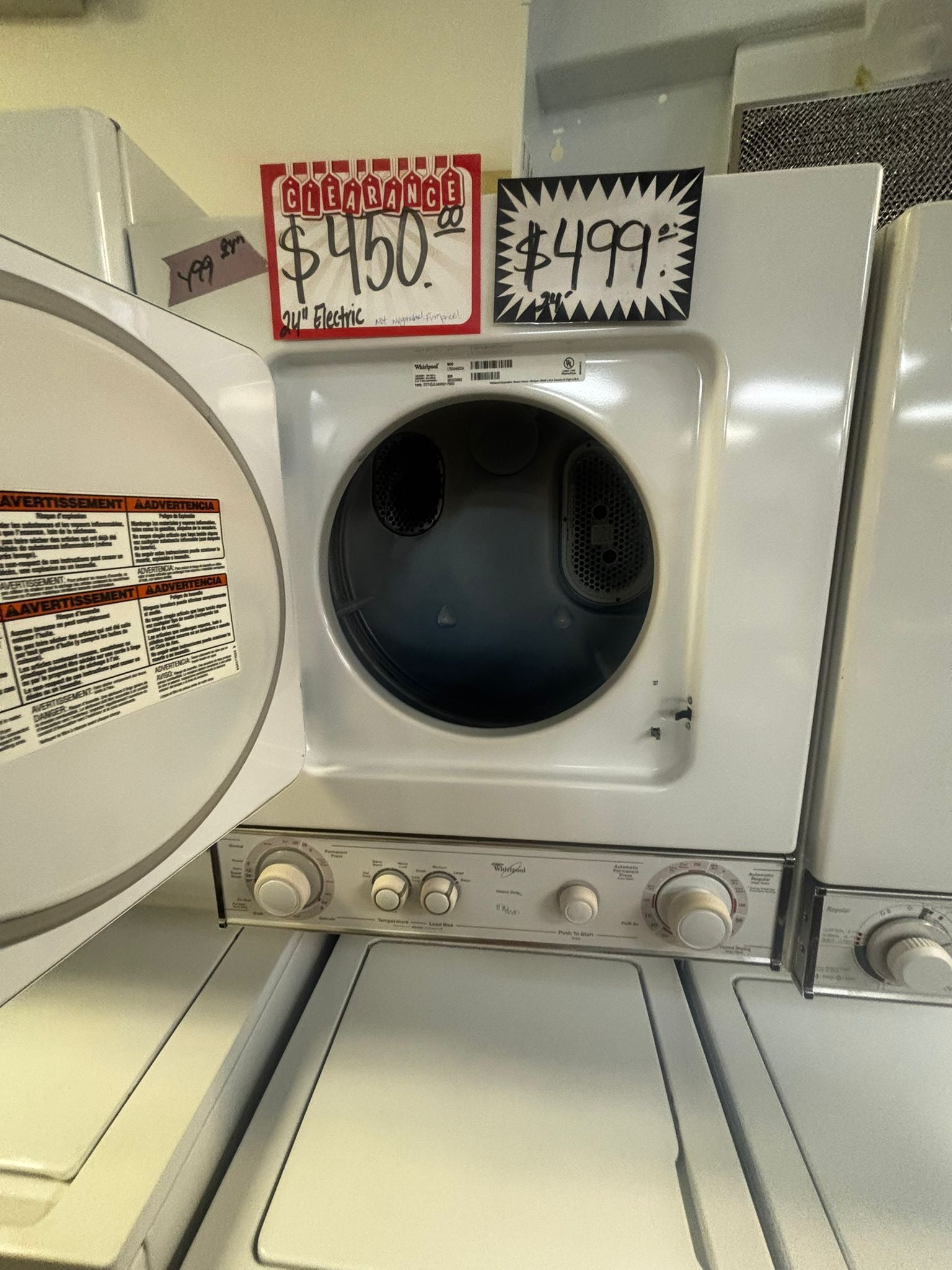 Whirlpool laundry center Electric 220v washer & dryer set in white 24" #LC427PL